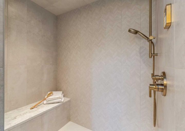 Built-in Features, Closet Organizers, Double Vanity, High Ceilings, Kitchen Island, Natural Woodwork, No Animal Home, No Smoking Home, Recessed Lighting, Skylight(s), Soaking Tub, Steam Room, Stone Counters, Sump Pump(s), Tankless Hot Water, Walk-In Closet(s), Wired for Data, Wired for Sound