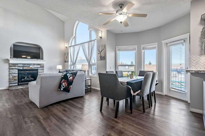 Beautiful Family Home on a Quiet Cul-de-Sac in Okotoks! Welcome to this stunning, fully finished home perfectly situated in a family-friendly cul-de-sac, tucked away from all the hustle and bustle of town. Sitting on an enormous pie lot, there’s plenty of room for the kids to play, entertain friends, or simply relax and enjoy the peaceful surroundings. As you arrive, a charming wrap-around veranda sets the tone for this warm and inviting property. Step inside to find large windows flooding the home with natural light, and tasteful updates throughout, including fresh paint and newer flooring. The main level features a bright, open living area that flows seamlessly into the kitchen complete with stainless steel appliances — perfect for family meals and gatherings. Upstairs, you’ll find a beautiful vaulted bonus room that’s open to below, creating a spacious, airy feel. The primary bedroom is thoughtfully tucked away at the back of the home for added privacy, featuring plenty of closet space and a luxurious 5-piece ensuite. Two additional bedrooms and a full bathroom complete the upper level. The fully finished lower level includes an office space that could easily be converted into a fifth bedroom, an additional bedroom, a 3-piece bathroom, and a large family room with walkout access to the perfectly manicured backyard. Additional highlights include in-floor heat, air conditioning, trendy soffit lights , and pride of ownership throughout. This is the perfect place to call home — a quiet retreat with space to grow, play, and make memories in one of Okotoks’ most welcoming neighbourhoods.
