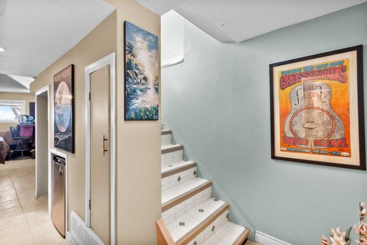 Take a stroll down West Chestermere Drive, this location is not to be missed! Nestled at the very end of this scenic cul-de-sac, next to a reserve, on an extra large private lot, is this wonderful walk-out bungalow. Built in 1976, this home has ample character and all the potential possible. With three bedrooms upstairs and two bedrooms down, here is all the room you need. Enjoy the open concept upper floor plan, big bright windows with natural lighting and an incredible view of the lake from your dinning room table. Four bathrooms, including a deep soaker tub. Two wood burning fireplaces in beautiful brick features. A large family room and spacious rec room, with a huge pool table included. Outside on your private deck is a working hot tub. The 32'x16' vinyl sided Boat House and dock and boat lift are only a few of the many perks this property has to offer! Underground sprinkler system, heated 30x30 garage with front access, huge concrete parking pad, a vinyl maintenance free retaining wall, an additional basement kitchen. Everything you could possibly need, right here in one place, on the lake.