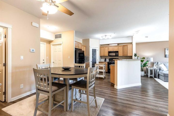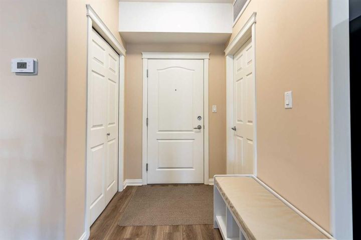 Welcome to a refined condo living in Riverside. This beautifully maintained 2-bedroom, 2-bathroom home offers an elegant open-concept layout, ideal for both everyday comfort and effortless entertaining. The kitchen features rich oak cabinetry, generous counter space, breakfast bar, and a spacious pantry–providing both style and functionality. The adjoining living room is bright and inviting, centered around an electric fireplace that adds warmth and charm. From here, step out onto the balcony and enjoy serene prairie views. The primary suite is a bright retreat, complete with a walk-in closet and a well-appointed 3-piece ensuite. A second bedroom and full bathroom provide flexibility for guests or a home office, Includes the Murphy bed and custom Cabinetry! Additional highlights include in-suite laundry with a stacking washer and dryer, an assigned underground parking stall in the heated garage, and a convenient storage room located directly beside your parking space. This quiet, secure building is situated in one of Medicine Hat’s most desirable communities. Riverside is known for its mature trees, scenic walking trails, and close proximity to the South Saskatchewan River. You’ll find yourself just minutes from parks, shopping, dining, and the city’s vibrant Downtown core. Don’t miss this opportunity–contact a real estate agent today to arrange your private showing!