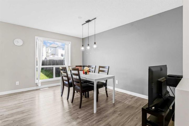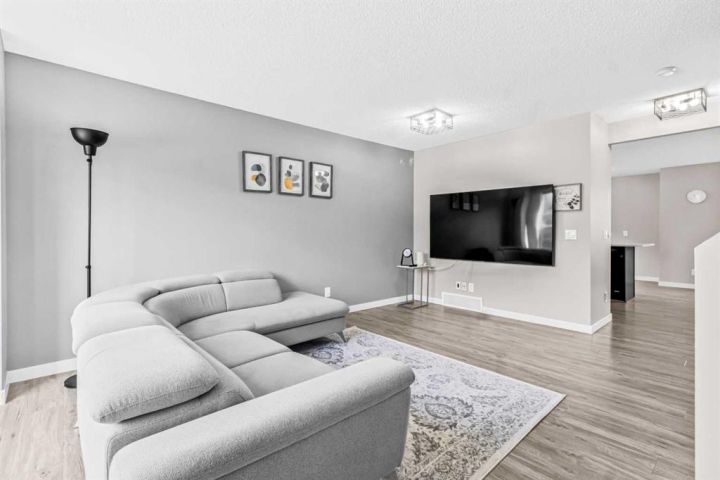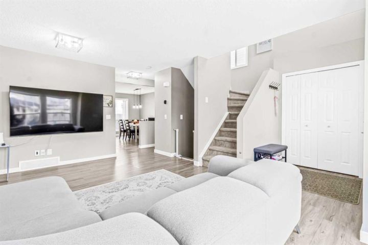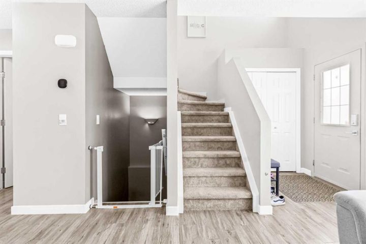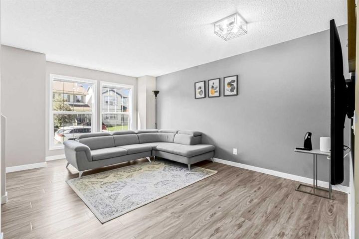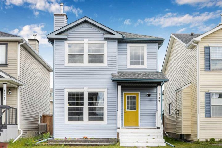BEST PRICE IN COVENTRY HILLS ! NEW ROOF NEW SIDING NEW FURNACE NEW HOT WATER TANK! Welcome to this charming and beautifully updated 3-bedroom home nestled in the heart of Coventry Hills. With nearly 1,400 sq ft of living space, this two-storey gem offers a perfect blend of modern upgrades and cozy character. Step inside through the cheerful yellow front door and be greeted by a bright, spacious living room featuring luxury vinyl plank flooring and updated lighting throughout. The chef’s kitchen, redesigned in 2019, boasts quartz countertops, a stylish tile backsplash, stainless steel double sink, and under/over cabinet lighting—ideal for both everyday cooking and entertaining. The dining area opens to a large, fully fenced backyard offering ample space for outdoor enjoyment and potential for a double garage. Upstairs you will find a renovated 4-piece bathroom, and three generous bedrooms including a primary suite with a 2-piece ensuite. The Partially Finished Basement with Framing ready, rough in bathroom, and 2 large windows waiting for your creativity. The laundry conveniently located in a shared area for both main floor and basement access. Additional updates include: New shingles (2025), New Siding (2025), New furnace (2020), New hot water tank (2020), Updated baseboards and lighting (2019), New Fridge (2023). Located in a prime family-friendly neighborhood, this home is close to schools, public transit, shopping, restaurants, Vivo recreation centre, easy access to both Stoney Trail and Deerfoot, and more. Don’t miss your chance to own this move-in-ready home full of warmth and modern touches. Contact your agent today to book a viewing!