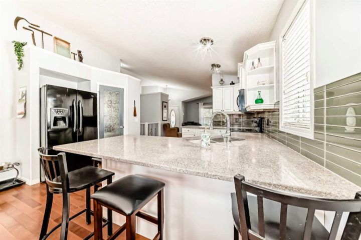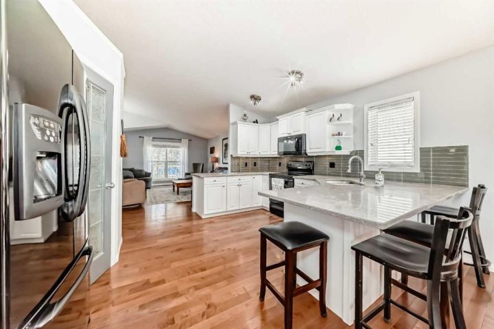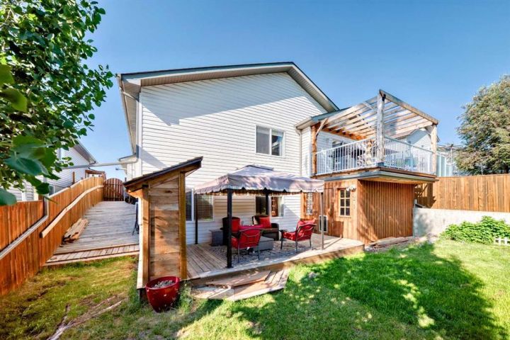 Located in the quiet and desirable Hillview Estates, this well-maintained 4-bedroom, 3-bathroom home offers comfort, style, and functionality. Features include a spacious open-concept layout, quartz countertops, heated double attached garage and a walk-out basement. Recent updates (all within the past year) include A/C, water heater, water softener, deck with cedar pergola—perfect for outdoor entertaining. Enjoy added luxury with a private 4 person wet / dry sauna. The family-friendly neighborhood is close to the Strathmore Golf Club, baseball diamonds, soccer fields, parks, playgrounds, a hockey arena, skateboard park, and other recreational amenities. Don’t miss this opportunity—book your showing today!