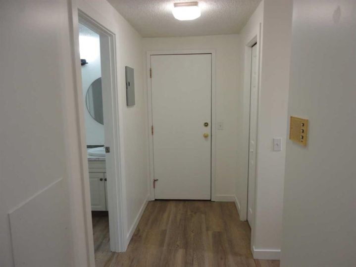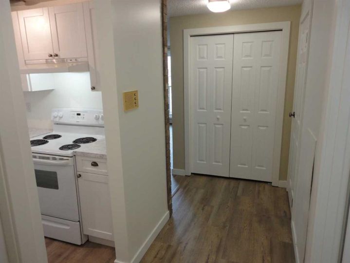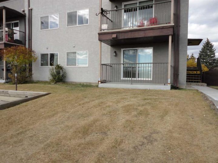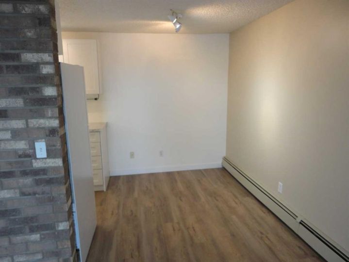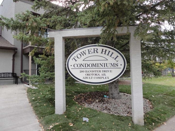 This 614 sq. ft. main floor (no stairs to climb) one-bedroom apartment-style condominium is ideally situated in a quiet residential community, backing onto a school field with southern exposure and unobstructed rear views. The property features a series of recent upgrades including new vinyl flooring with enhanced underlay, fresh paint, new doors, partially updated lower kitchen cabinets, a new refrigerator, window coverings, countertops, toilet, shelving storage racks, and freshly painted door trim. As a corner unit, it benefits from an additional window between the living and dining areas, ensuring ample natural light throughout. The interior includes a split brick feature wall, a spacious living room with patio doors leading to a balcony, and both the bedroom and living room overlook a green space. The dining area adjoins the galley kitchen, while an updated four-piece bathroom is conveniently located off the main entryway. Additional amenities include in-suite storage and two surface parking stalls. This residence offers an excellent opportunity for young couples, seniors not wanting stairs or single professionals seeking comfort and convenience in a well-maintained setting. Walking distance to Starbucks, Safeway, Dollarama and many other convenient amenities. Also located close to the North end of Okotoks for closer access to Calgary for the commuter.