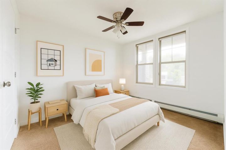 Dishwasher, Electric Stove, Microwave Hood Fan, Refrigerator, Washer/Dryer Stacked, Window Coverings
