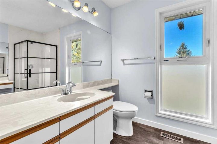 OPEN HOUSE Sat 18 Oct 11-3. Have a look at this newly refreshed 4 bedroom, 4 bathroom exquisite home with spacious double attached garage in distinguished Douglasdale -- near all services including schools, golf course, and shopping. Sitting in a quiet location with fast access to transportation corridors like the Deerfoot Freeway, this perfect home with a 17-foot high foyer leads to a large and bright living room with a west-facing window on one side, and a bright hallway opening to other living areas: first the flex area, then on each side of the dining room is the kitchen and family room with a gas fireplace. FYI. EACH room has hardwood flooring and mostly newer triple-paned windows throughout. Upstairs are 3 spacious bedrooms and 2 bathrooms including an impeccably renovated ensuite. The fully-finished basement features the 4th bedroom, another full bathroom, and a vast entertainment area with built-in cabinetry. The large deck at the back broadcasts to a fully-fenced equally large backyard. You’ve got to compare this 2700 sq ft beauty to other higher-priced, tawdry abodes to see why you want to buy this gem at 37 Douglasbank Rise right away.