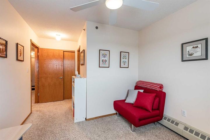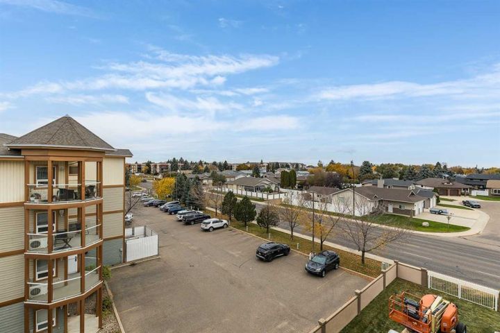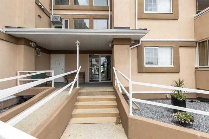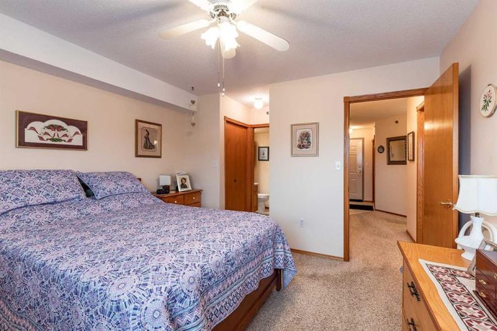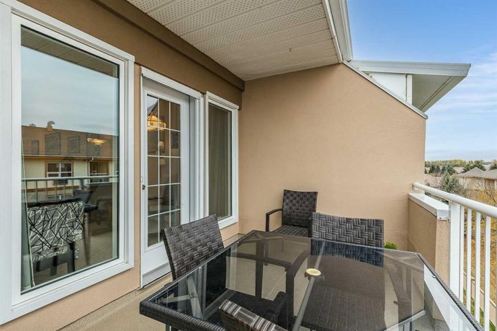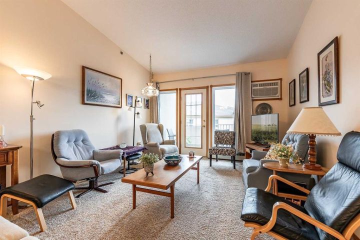 Welcome home to this beautifully maintained top-floor 2 bedroom, 2 bath condo offering comfort, convenience, and a true sense of community. With 1044 sqft of bright, thoughtfully designed living space, this home features vaulted ceilings in the living and dining areas that create a spacious, open feel. The functional layout includes a generous primary suite with his-and-her closets and a private 3 pc ensuite, plus a second bedroom with access to the 4 pc main bath. The neutral décor provides a timeless backdrop for any style. This non-smoking, pet-free unit includes an assigned underground parking stall and storage. Condo fees cover all utilities except cable and phone, ensuring easy, predictable monthly costs. Residents enjoy exceptional building amenities, including a fitness room, meeting room with kitchen, games room, library, and a BBQ area, perfect for connecting with neighbours and enjoying community living at its best. Ideally located close to shopping, restaurants, transit, parks, and walking paths, this condo is perfectly positioned for an easy, connected lifestyle.
