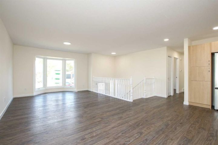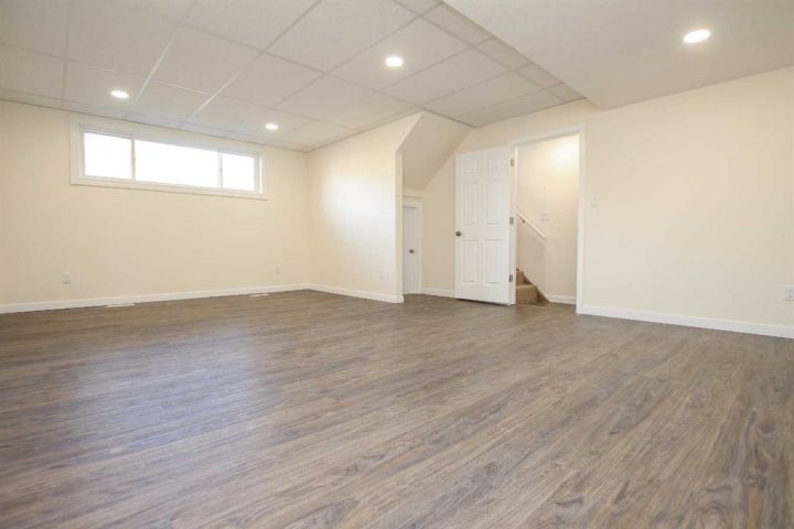 IMMEDIATE POSSESSION AVAILABLE ~ FULLY RE-BUILT HOME ~ 4 BEDROOM, 3 BATHROOM BI-LEVEL WITH OVER 1300 SQ. FT. ABOVE GRADE ~ WALK-UP BASEMENT W/SEPARATE ENTRY ~ BACKING ONTO MATURE TREES & SIDES ON TO A WALKING TRAIL ~ Sun filled entry welcomes you to this brand new, move in ready home ~ The open concept layout is complemented by vinyl plank flooring to create a feeling of spaciousness ~ Floor to ceiling bay windows in the expansive living room overlook the front yard and allow for natural light to fill the space ~ Easily host large gatherings in the dining room floor to ceiling windows offering more natural light ~ The spacious kitchen offers an abundance of soft close cabinets with oversized drawers and built in pantry, tons of counter space, full tile backsplash, window above the sink overlooking the deck and backyard, plus brand new stainless steel appliances ~ Separate entry from the kitchen leads to a wrap around deck that overlooks the backyard and has enclosed storage below ~ The primary bedroom can easily accommodate a king size bed plus multiple pieces of furniture, has dual closets, a 4 piece ensuite, and sliding patio doors to the deck ~ 2 additional main floor bedrooms are both a generous size and are conveniently located across from the 4 piece main bathroom ~ The fully finished basement with high ceilings offers a spacious family room, 4th bedroom, 4 piece bathroom, laundry (with new front load laundry pair), and a separate entry with walk up access to the backyard ~ Double attached garage is insulated and finished with painted drywall ~ The fully fenced backyard has enclosed storage below the deck plus a garden shed, fire pit, plenty of grassy yard space and mature trees offering shade and privacy ~ Beside and backing on to a walking trail and treed green space that connects to more trails, green space, parks, playgrounds and outdoor fitness area ~ Easy access to multiple schools, rec centres, transit and tons of shopping with all amenities ~ Home was rebuilt in 2023 with work completed by DKI - Central Alberta and includes the balance of the Alberta New Home Warranty Program.