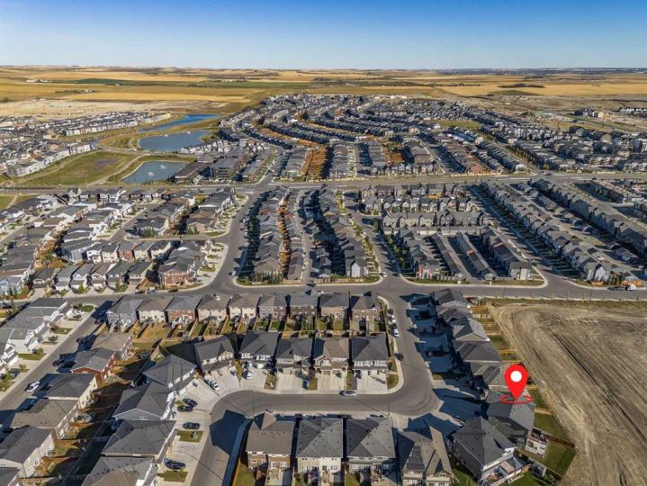 An Unbeatable Opportunity with Unmatched Privacy Don't miss this rare chance to own a beautiful half-duplex in the desirable community of Carrington—a home that offers both an incredible value and a peaceful setting. This property stands out from the rest with its unique pie-shaped lot and the huge bonus of no rear neighbors, ensuring a private, serene backyard oasis. Step inside and be greeted by the home's bright, open-concept floor plan, enhanced by soaring 9-foot ceilings and elegant Luxury Vinyl Plank flooring on the main level. The living room is flooded with natural light, creating a warm and welcoming atmosphere. The thoughtfully designed kitchen is a chef's delight, boasting a full set of stainless steel appliances, beautiful quartz countertops, an eating bar, and soft-closing drawers. It's perfectly positioned to serve the spacious dining area, making it ideal for everyday meals and entertaining. Upstairs, the generous primary bedroom is your private retreat, featuring a walk-in closet and a private 3-piece ensuite. Two additional well-sized bedrooms offer large windows and share a 4-piece bathroom, providing comfort and space for family or guests. Plus, the convenience of an upper-level laundry room makes chores a breeze. The full and unfinished basement is a blank canvas, giving you the freedom to create a space that perfectly suits your needs, with rough-in plumbing already in place for a future bathroom. Enjoy year-round comfort with central air conditioning and the added convenience of an insulated attached garage. The true highlight of this home is the expansive, fully fenced southeast-facing backyard, complete with a deck and patio and underground sprinklers. It’s a spectacular space for entertaining, gardening, or simply relaxing in complete privacy. Located in a fantastic community with easy access to shopping, parks, and major routes like Stoney Trail, this home offers everything you need and more.This is not just a house; it's the perfect combination of modern living, privacy, and endless potential. Priced to sell, this exceptional home is a smart investment showing today!