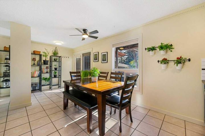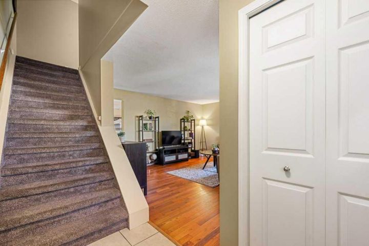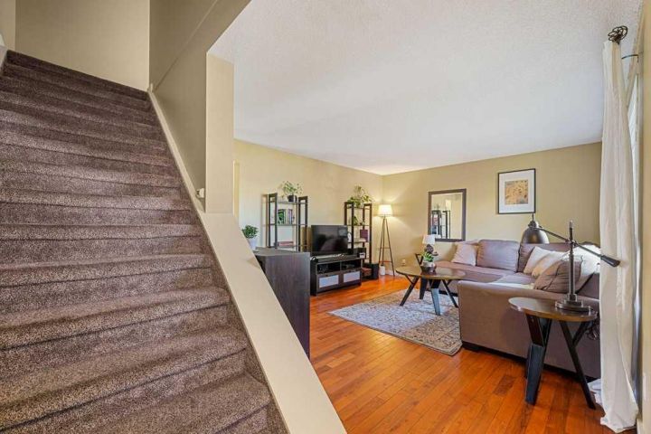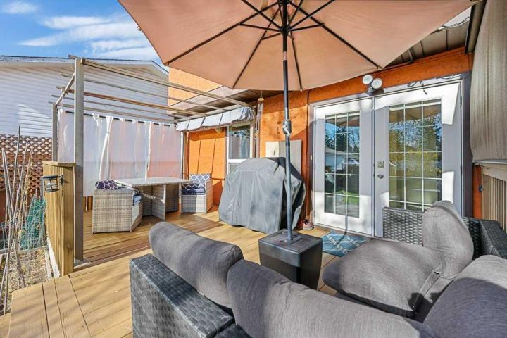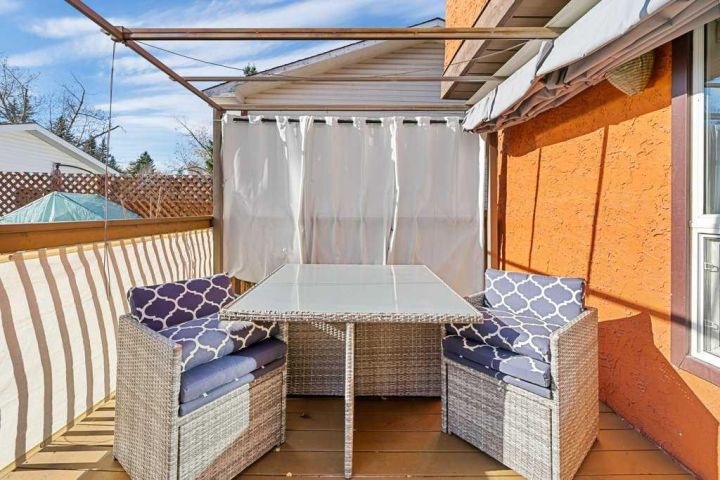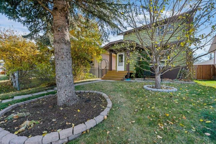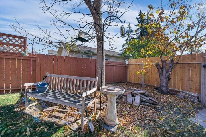 Nestled in a private cul-de-sac only steps from the LRT, this desirable Shawnessy 2 storey home boasts over 1500 sq. ft. of total space, complete Central A/C, plus a finished basement! Be drawn into the spacious living room with large windows that flood the area with natural light! Hardwood floors adorn this area. The bright open kitchen is complete with updated cabinetry and newer stainless steel appliances. The eat-in dining area is complimented by the large windows that give sunny views of the "south-facing" tranquil oversized backyard! The rear deck is large and perfect for entertaining or simply enjoying the sunshine. Ascend to the upper level, complete with the primary master suite, plus two adjacent bedrooms. A 4 piece bathroom completes the upper level. The basement is finished with a family room - tastefully cozy and inviting, plus a large storage and laundry area. Flooring is engineered hardwood. Enjoy being a few steps from the LRT, plus close proximity to Fish Creek Park. Within walking distance to Shawville (grocery stores, theatre, pubs, restaurants, health care services). A healthy lifestyle awaits you...no need to own a car!