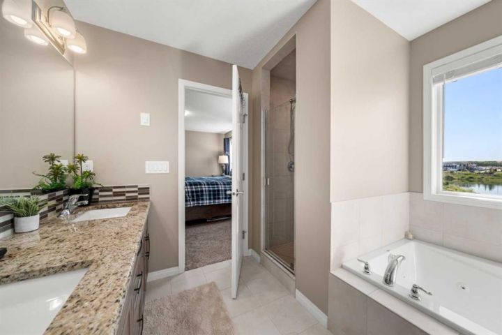 Immaculately maintained and move-in ready, this 4-bedroom, 3.5-bathroom walkout home offers the perfect blend of comfort, style, and functionality. With 3 bedrooms upstairs and 1 on the lower level, this property has been meticulously cared for, with no smoking or pets ever inside. The main floor boasts a bright and spacious living room with expansive windows overlooking the pond, creating a serene backdrop for everyday living. The kitchen features a central island, granite countertops, and plenty of cabinetry, flowing seamlessly into the dining area and out onto a large deck—perfect for entertaining or simply enjoying the view. Upstairs you’ll find a bonus room ideal for a play space, home office, or media area, as well as two generous secondary bedrooms and the spacious primary suite. The 5-piece ensuite includes a soaker tub, double vanity, and separate shower, making it a true retreat. The fully finished walkout basement extends your living space with a spacious recreation room, an additional bedroom, and a full bathroom—ideal for guests or multi-generational living. Step outside to the low-maintenance backyard with artificial grass that backs onto a peaceful pond, offering privacy and year-round greenery. This home is a rare find for those seeking a move-in ready property with thoughtful upgrades, a functional floor plan, and an unbeatable location with pond views.