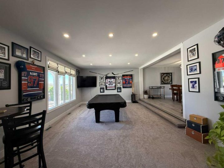 EXECUTIVE STYLE HOME LOCATED ACROSS FROM LEGACY REGIONAL PARK! Imagine over 5300sqft. of living space on over a 1/3 of an acre lot with Parking for 20! This home has had many renovations completed including, new furnace with zone heating, hot water tank, paint throughout, flooring throughout, some counters, new massive deck, landscaping including a beautiful paving stone sidewalks and firepit area, epoxy garage floors and many more. With this home you get to enjoy these 5 living areas - a sunken living room with a fireplace on the main floor, another formal sunken living room, 2 spacious family rooms on the lower level, and a bonus room upstairs with access to your balcony to enjoy fresh air and sunshine. This home welcomes you in immediately with an open foyer framed by the open staircase to the second level. The kitchen is spacious and functional with plenty of storage, counter space, and a gas cooktop. You'll love the breakfast nook just off the kitchen and the separate formal dining room. Just off the dining room you'll find the light and airy sun room with access to your partially covered deck. This expansive main floor also offers main floor laundry, two bathrooms, plenty of storage, and access to the insulated double attached garage. THE SECOND LEVEL SHOWCASES 4 BEDROOMS with a bonus room, a rare and sought after layout. You will be amazed at the size of the master suite with 4 piece ensuite, fireplace, and walk-in closet. The fully developed lower level has an exceptionally large recreation room with another fireplace, and 5 walk in closets for storage, plus a den and another 3 piece bathroom. This unique layout and quality is difficult to find in a home.