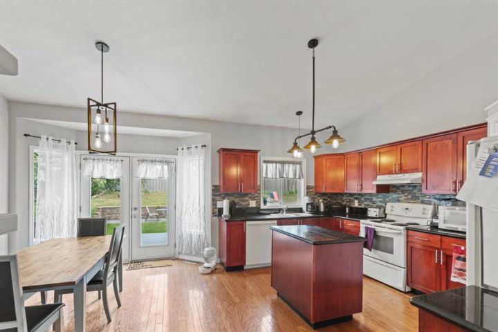 This beautifully maintained bungalow in O’Brien Lake is move-in ready and full of thoughtful updates. With 2 bedrooms on the main floor and 2 more downstairs, it offers the perfect blend of space and functionality for any family. Step inside to a bright, inviting main level featuring vaulted ceilings, elegant hardwood flooring, and fresh paint throughout. The kitchen stands out with granite countertops, a center island, corner pantry, and tiled backsplash—all flowing seamlessly into the open dining and living area. The living room offers a cozy gas fireplace, while main-floor laundry adds everyday convenience. The spacious primary suite includes a walk-in closet and ensuite with a large tiled shower. Downstairs, the fully developed lower level features a massive family room, 2 additional bedrooms (one ideal as an office), and a stylish full bathroom with tile finishes. Outside, the landscaped yard includes tiered concrete curbing, full fencing, and a great deck space—perfect for family time or entertaining. Recent updates include new shingles, a newer hot water tank (2022), and a serviced furnace for added peace of mind. The heated, finished garage tops it all off as an ideal workspace or winter parking spot. Located steps from parks and walking trails, this O’Brien Lake bungalow offers comfort, style, and convenience in one great package.