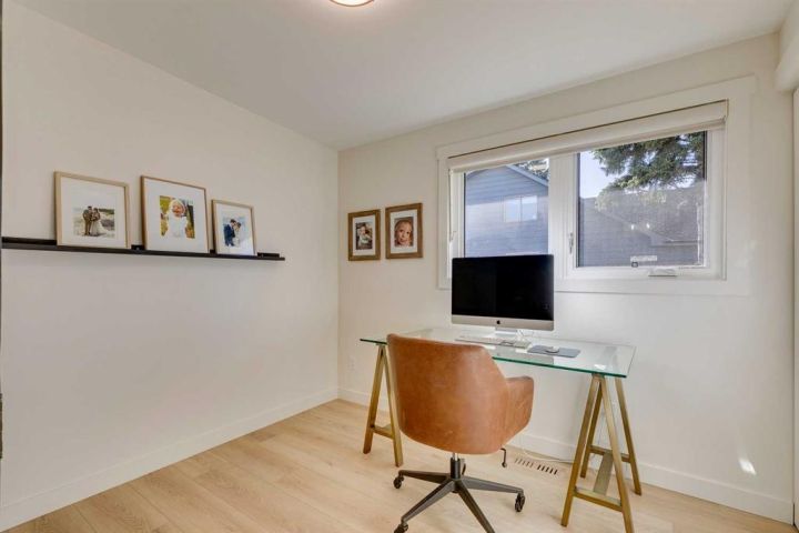Fabulous, completely remodeled + re-designed home, completed this year. Featuring stunning open spaces + well-balanced room sizes throughout. The main level offers a warm inviting great room with wood-burning fireplace, spacious informal dining area + a chef’s kitchen with extensive cabinetry, dedicated coffee station + an open eat-in kitchen which completes this space. Beautiful luxury vinyl plank flooring runs throughout the main floor, complemented by smooth ceilings, solid oak railing. The lower level is finished to the same high standard, featuring a large family room, gym area, full laundry/mudroom area with storage, full bath + generous bedroom. All mechanicals have been redone, including, plumbing, electrical, HVAC, air conditioning + sprinkler system. Freshly painted inside + out. Exterior upgrades include new SBS Granulated Roofing system, new landscaping with composite decking, stone patio, trees/shrubs + double detached garage. Located just steps from the ridge + the stunning views of Fish Creek Park, close to schools, city pathway system, Park 96 with pickle ball/tennis courts, playground + family amenities. A total structural transformation creating a truly exceptional modern home.