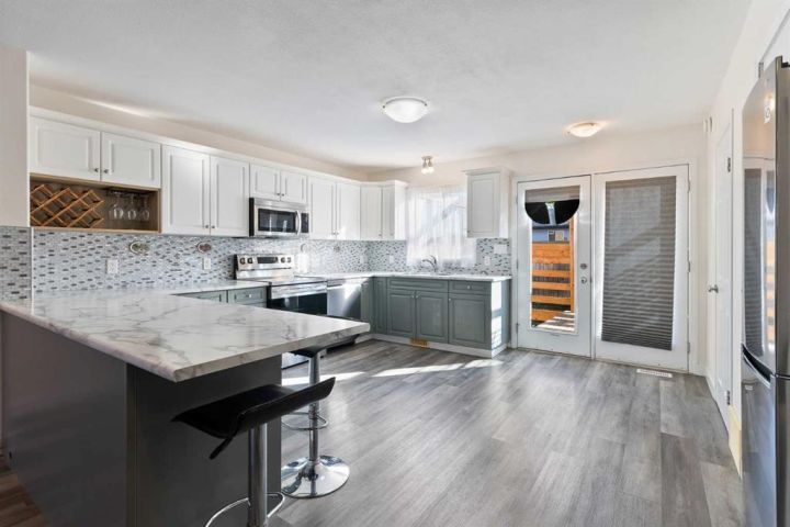This modern, fully updated townhouse is move-in ready and designed for style and function. Featuring new laminate flooring throughout, a freshly upgraded kitchen with sleek new countertops, modern colors, and brand-new appliances, this home delivers a bright and inviting atmosphere. The bathrooms have been tastefully updated, and with four bedrooms and three bathrooms, there’s space for the whole family or guests. The open-concept living area highlights a stunning rock focal wall that adds warmth and character, leading to your private patio and fenced-in deck area — complete with bistro lights for cozy evenings outdoors. This turnkey home perfectly blends comfort, convenience, and modern design, making it an ideal choice with affordability in mind.