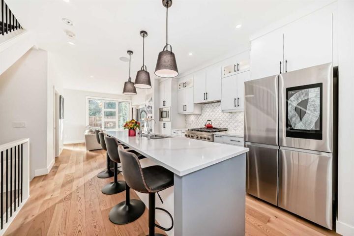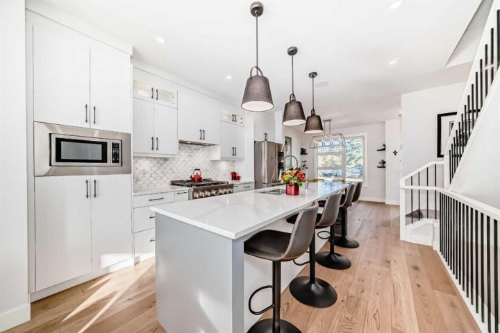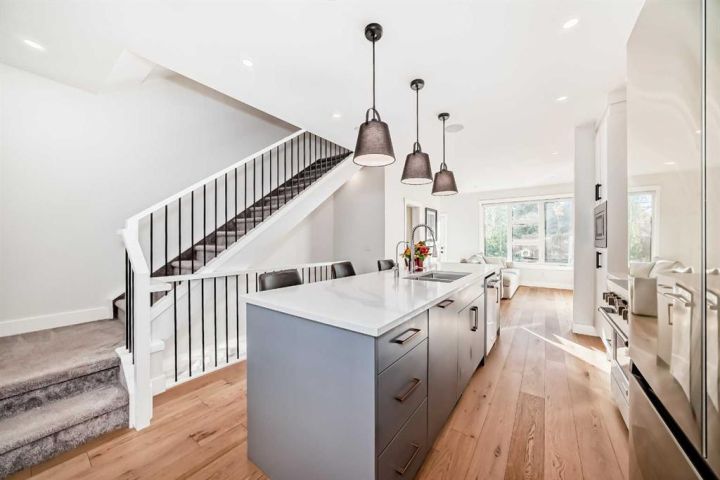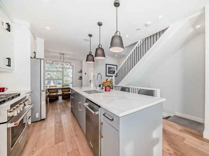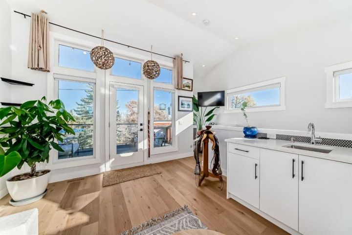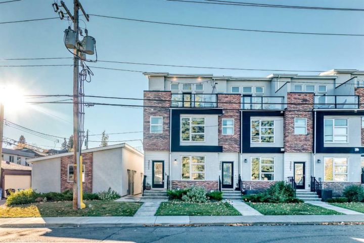 **Open House- Sat, Oct 18th 1-3pm, Sun, Oct 19th 4-6pm** Introducing a luxurious 3-storey townhome designed for modern inner-city living in the heart of South Calgary, just steps from Marda Loop. This corner unit stands out for its thoughtful upgrades, premium finishes, & unbeatable location directly across from the newly renovated South Calgary outdoor pool, tennis courts, ice rink, soccer fields, Marda Loop Community Centre, playground, & beach volleyball courts. Step inside to a bright, open-concept main level featuring wide-plank engineered hardwood, a central chef’s kitchen, and a selection of premium appliances that elevate everyday living, with over 2200 sq. ft. of developed living space. Highlights include a state-of-the-art smart fridge with built-in display, remote viewing, Bluetooth connectivity, & premium built-in speaker, along with a professional-grade oven. A Kinetico whole-home water filtration system, including a water softener, de-chlorinator, & K5 drinking water system, ensures clean, crisp water throughout. The kitchen is anchored by a large eat-in island, quartz countertops, & full-height custom cabinetry. The adjoining main-floor spaces offer flexible use as a dining area or cozy living room with a gas fireplace, creating the perfect setting for both entertaining & everyday relaxation. Upstairs, you’ll find two spacious primary bedrooms, each complete with its own spa-inspired ensuite. The main primary suite offers a walk-in closet with custom built-ins, heated floors, & a glass-enclosed shower with a rainfall showerhead. A dedicated laundry room with a built-in sink completes this level, for everyday comfort & convenience. The top floor is an entertainer’s dream, featuring a large recreation room with engineered hardwood floors, a wet bar, & direct access to your private rooftop patio, perfectly positioned to capture downtown views, morning sunrises, & afternoon sunlight. The upper deck offers a rare luxury for this price range & location. The fully finished basement offers a third bedroom, full bathroom, & second wet bar, providing flexibility for guests, a home office, or additional living space. Outside, this home is complemented by a fully insulated & drywalled single detached end garage with a window, maintaining warmer temperatures in winter than others in the complex. Tech enthusiasts will love the pre-wired sound system with in-ceiling speakers on each level, volume controls, & smart home infrastructure ready for seamless integration with your preferred devices. Set within a beautifully landscaped central courtyard, this home offers both privacy & community. Enjoy being just minutes from coffee shops, restaurants & all of Marda Loop’s boutique amenities, plus only a 12-minute drive to downtown Calgary. This exceptional townhome delivers style, comfort, and true luxury in one of Calgary’s most desirable inner-city neighbourhoods. Homes in this complex rarely become available, book your private showing today & experience the difference.