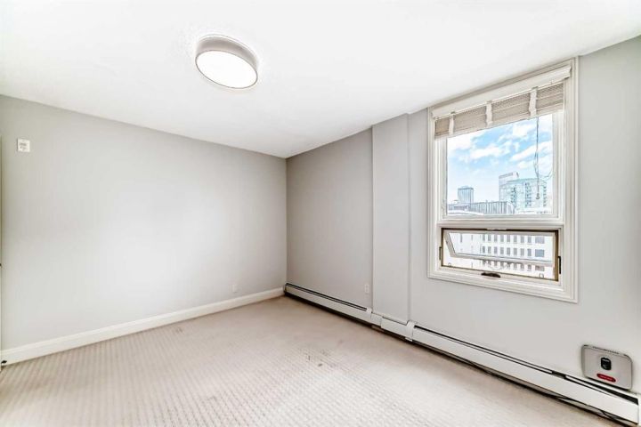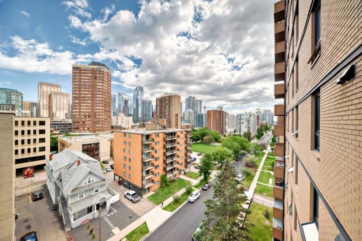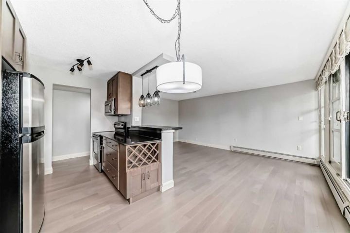 Vibrant location! Come home to a spacious two bedroom condo with great views of downtown and Beaulieu Gardens. Turn key, recently upgraded with fresh paint and engineered hardwood flooring, close to great boutiques, restaurants and pathways! Open concept great for entertaining, the kitchen showcases granite counters and stainless steel appliance package and overlooks dining and living room with an expansive balcony. (A couple photos have been virtually staged). This stylish bright condo offers lots of storage with both in-suite laundry and common laundry. This concrete building offers twin elevators, exercise room, social room, separate storage and designated parking. Well managed with heat and electricity included in condo fees and is a pet friendly building (with board approval). Rarely found, the building has a large fenced in grass yard with seating. No post tension, no age restrictions! Come home desired Beltline, flexible possession!