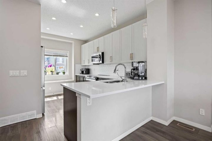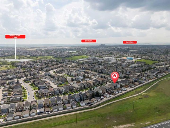 Discover incredible value in the heart of Mahogany with this charming detached home, perfectly positioned in one of Calgary’s most sought-after lake communities. Offering 3 bedrooms and 2.5 bathrooms, this thoughtfully designed home combines comfort, function, and lifestyle. The main floor welcomes you with a bright, open layout featuring a spacious living area, a modern kitchen with sleek cabinetry, and a cozy dining nook—perfect for both entertaining and everyday living. Upstairs, you'll find three generous bedrooms, including a spacious primary retreat complete with a large walk-in closet and plenty of natural light. The backyard is fully fenced and features a beautiful space for summer BBQs, relaxing evenings, and letting kids or pets play freely. A concrete parking pad and paved back alley at the rear provide off-street parking and potential for a future garage. This Hopewell-built home also boasts quartz countertops and stainless steel appliances, maintained to the highest city standards thanks to the current licensed daycare operation, ensuring exceptional cleanliness and care throughout. Located within walking distance to both the public and Catholic schools and just steps to Mahogany’s pathways, lake access, and vibrant amenities, including Mahogany Plaza with Shoppers Drug Mart, Tim Hortons, Subway, Sobeys, and more. The YMCA and South Health Campus Hospital are a short drive away, with easy access to Stoney Trail and Deerfoot Trail, making commuting and recreation seamless. This is your chance to enjoy year-round lake living at an unbeatable price in a community that truly has it all.
