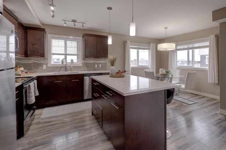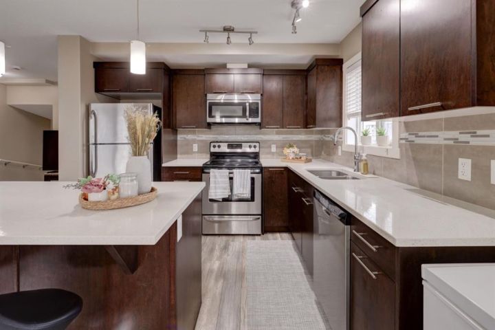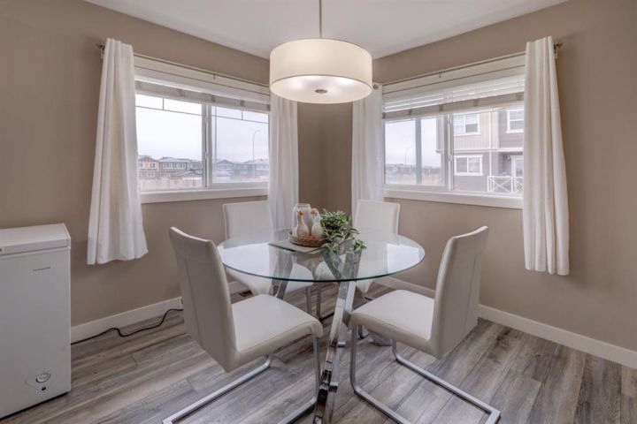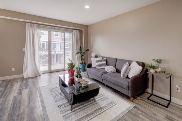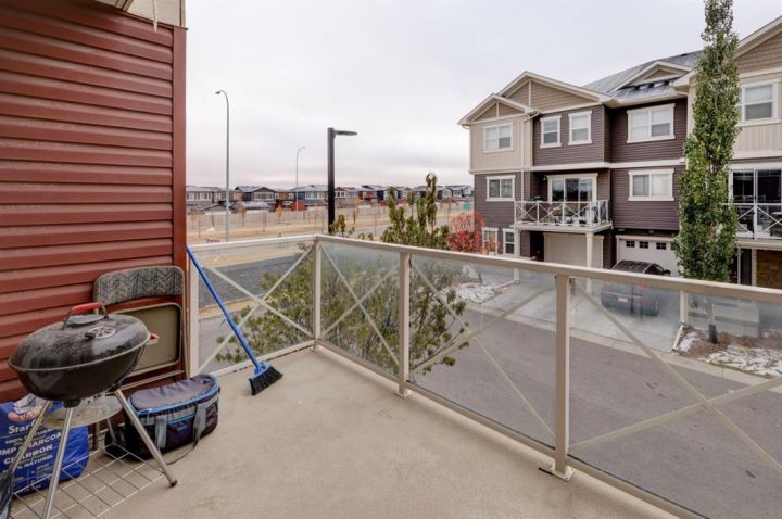 HOME SWEET HOME! OPEN HOUSE SATURDAY OCTOBER 18th & SUNDAY OCTOBER 19th, 1-3 PM! Welcome to your stunning Townhouse in the family-friendly community of Skyview Ranch! Step inside this beautifully updated END UNIT 4 BEDROOM TOWNHOUSE offering over 1,604 SQFT of comfortable, modern living space. The main floor features a versatile bedroom, perfect for guests, a home office, or a gym. Head upstairs to the bright and airy open concept living area, where large windows fill the space with natural light. The gourmet chef's kitchen is well designed with plenty of counter and cupboard space, quartz countertops, a quartz island with a breakfast bar and stainless steel appliances , opening to a spacious dining area that flows seamlessly onto your private balcony, the perfect spot to enjoy your morning coffee. This level also includes a convenient 2-piece powder room and convenient in-suite laundry. On the top floor, you’ll find a spacious primary bedroom complete with a 4-piece ensuite and walk-in closet, plus two additional bedrooms and another 4-piece bathroom, providing plenty of room for the whole family. RECENT UPDATES include new vinyl plank flooring throughout and fresh paint, giving the entire home a fresh, modern feel. Additional highlights include an attached single car garage with a driveway for extra parking, and visitor parking conveniently located right beside the unit. Situated in a quiet part of the complex, you’ll also enjoy extra green space which is IDEAL FOR PET OWNERS and added privacy with your side entrance. This well maintained home is close to schools, parks, shopping, restaurants, and major roadways, making it ideal for families or investors alike. Book your private tour of this GEM today!
