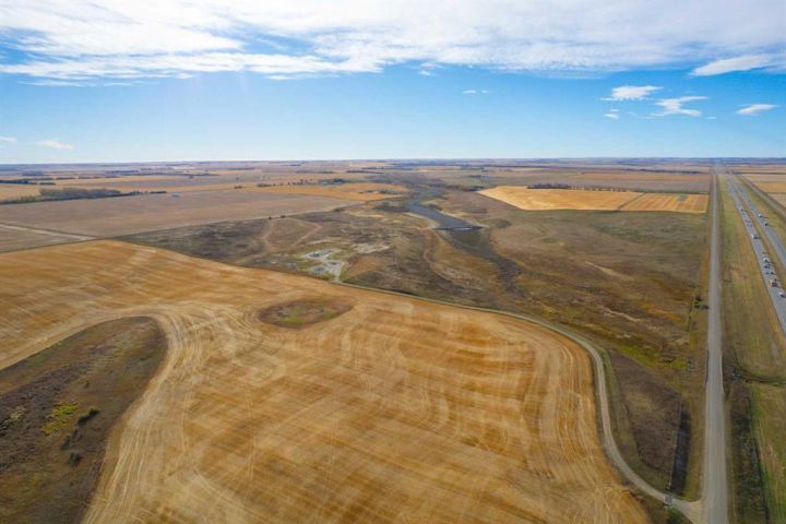 124.68 ACRES located just NORTHEAST OF CARSTAIRS, ideally situated along the QE2 corridor. This quarter section features open PASTURELAND, fenced and currently used for grazing (fencing may require some upgrading). In wetter years, a natural wetland area runs through the center of the property, offering seasonal water flow and wildlife habitat. Includes a Whitecap Resources oil lease site generating $4,100 annually in lease revenue. Excellent opportunity for AGRICULTURAL, INVESTMENT, or FUTURE DEVELOPMENT with great access and visibility from the highway.