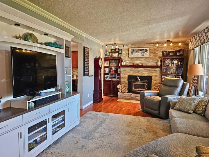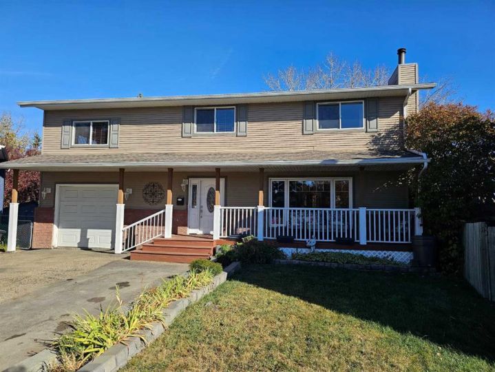 5 bedroom, 2 storey home with attached garage on .34 acre lot in the city! This beautiful unique home is located in a cul-de sac backing onto a treed area. Massive kitchen with plenty of cupboard space, 2 different sitting areas off the counter, pantry, stainless steel appliances and built in desk area. The dining area is well lit with 2 skylights, looks into the huge backyard and is 10x20 in size. The living room has a fireplace and there is hardwood throughout the main floor. Laundry is located on the main floor in the 3 piece bathroom. Upstairs, the primary bedroom has a 6x14 balcony overlooking the backyard. There are another 4 bedrooms, yes that's tight 4! Surprisingly, they are all good sized bedrooms and to finish off the upstairs is a 4 piece bathroom. Downstairs, is a large family area for entertaining plus there is a flex area that could serve multiple different purposes. The back deck is composite, leading into a fire pit area, and just off a glass enclosure for the hot tub. There is one huge shed plus 2 others, a raspberry patch and box gardening on the side of the house. As you can see the RV is parked in the backyard as well. Furnace replaced in 2018 and the singles were done in 2024. This home has been really cared for and is unique in design, coming off the farm this could be your stepping stone as the yard offers that country feeling. An acreage with this well looked after home would cost you plenty and could be the compromise that you are looking for.