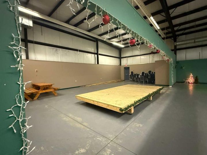 Shop/Warehouse with approx 10000sqft of floor space, features several offices, storage space and a commercial kitchen. Located on 24.71 acres with Highway visibility and close proximity to the Railway. Current use is a community hall but it would be a perfect space for a commercial or industrial venture!!
