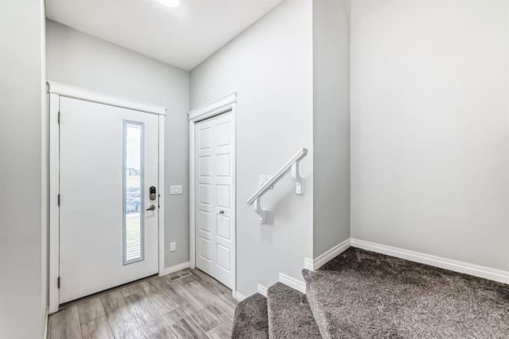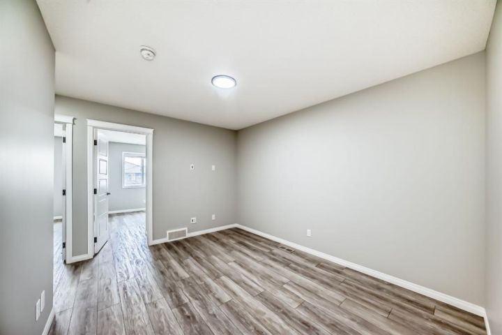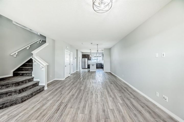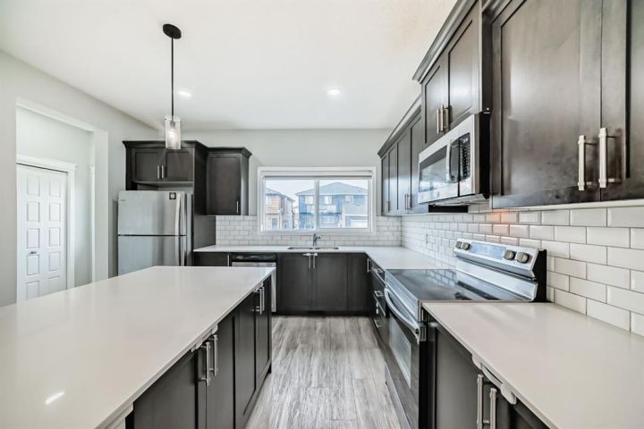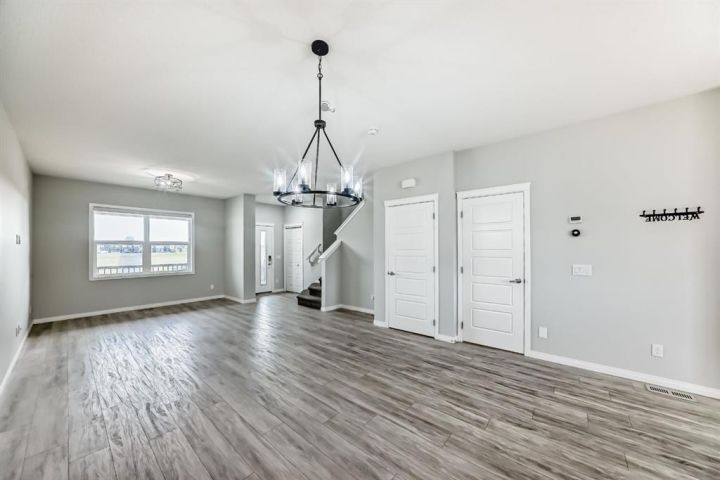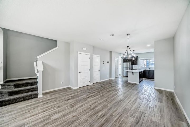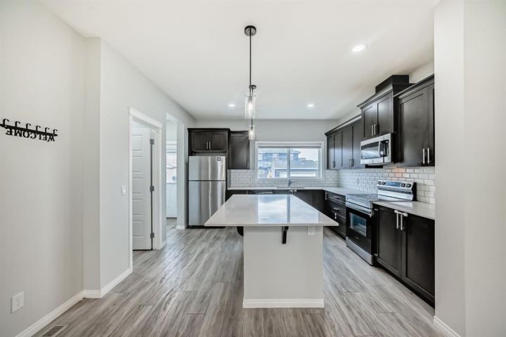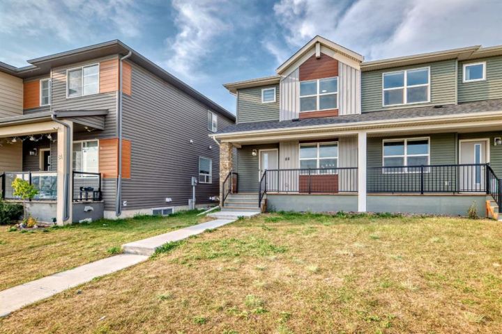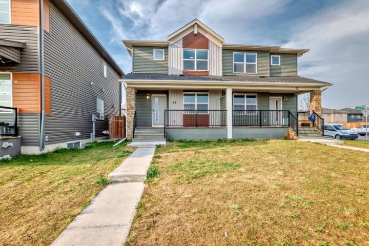 This almost-new, corner lot duplex in Cornerstone is ideally located with a front-facing park, offering both peace and convenience. Just a minute’s walk from a beautiful pond, the home features a modern open-concept design with a spacious living room, elegant dining area, and a chef-inspired kitchen with a stunning center island, stainless steel appliances, and a large pantry. Beautiful cabinetry with clean, modern look. Stainless steel appliances for a stylish touch. Large pantry for all your storage needs Bright, wide window flooding the space with natural light. Upper-Level Comfort- 3 spacious bedrooms + a versatile bonus room, Primary room with a 3-piece ensuite & walk-in closet. Additional common bath for convenience. Unfinished Basement – Endless Potential! 9-ft ceilings for a spacious feel, Separate exterior entrance. Two egress-sized windows for natural light & safety. Rough-ins for a future bathroom – customize to your needs. Prime Location & Unbeatable Convenience! Steps from playgrounds, shopping & the new Chalo FreshCo Plaza. 5 minutes to CrossIron Mills Mall. 10 minutes to Calgary International Airport. Quick access to Deerfoot & Stoney Trail – easy commuting! This gem won’t last long! Book your private showing today!