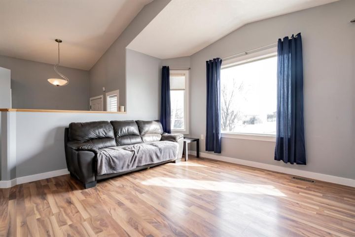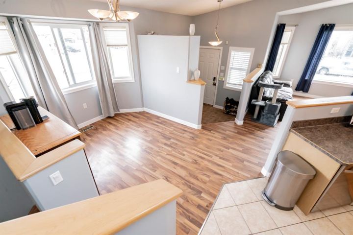 You have to see this unique open floor plan - upper level has a "flex" room that looks out over the main floor. Large entry way greets you when you enter this home. Vaulted ceilings on the main level, lots of natural light, kitchen with stainless appliances, corner pantry & tile flooring, large living room and dining area. Upper level features a large master bedroom with double closets and private access to the main bathroom with updated porcelain tile. There is another good sized bedroom and the flex room/office area. The third level has a full bathroom, convenient laundry, and a huge family room with a walkout to the fenced back yard and ground level deck. The fourth level is partially developed and presently being used as a super sized master bedroom area. Corner lot, and no neighbors right behind you allow some extra privacy! Double paved driveway out front. Shingles were replaced a couple years ago! Countryside south is a great family friendly area with parks, walking trails, close to shopping and schools. Call your favourite REALTOR and get in to see this home!