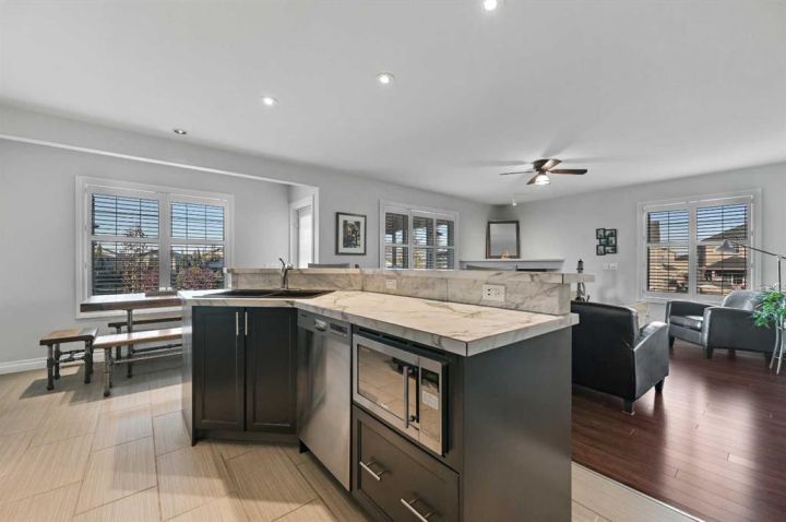 Open House Saturday the 18th from 12:15 pm to 2 pm.If you’ve been searching for the ideal family home that balances comfort, community, and convenience, look no further! This beautifully finished 2 storey walk-out offers over 2,500 sq. ft. of thoughtfully designed living space and checks every box for today’s family. Nestled on a quiet cul-de-sac, this home backs and sides onto a peaceful green space, the perfect place for kids to explore and safely play. Just steps away, you’ll find a tot lot and nearby schools, making those morning drop-offs quick and easy. Inside, the bright and open main floor is filled with natural light and designed for family connection, whether it’s weeknight dinners or weekend movie nights. The kitchen and nook open to your south facing raised deck that overlooks your backyard, walking paths and views of the nearby hillside and rooftops. The privacy up on the deck is great for soaking in the suns rays, getting some relaxation in, and especially enjoying it with friends or family. Upstairs you’ll find three spacious bedrooms, including a primary suite with a walk-in closet and a full ensuite bath. A large bonus room offers the perfect space for a play area or family hangout, it is a real cozy spot! Downstairs, the fully developed walk-out basement adds even more room for your family to grow, complete with a bright family room and 3 -piece bath and 4th bedroom. Step outside to your massive west-facing backyard, beautifully landscaped and fully fenced, great for barbecues, kids’ playtime, and evenings in your private hot tub under the stars. With a double attached heated garage, modern finishes, and a prime location close to parks and shopping, this is more than a house, it’s a place your family will call home.