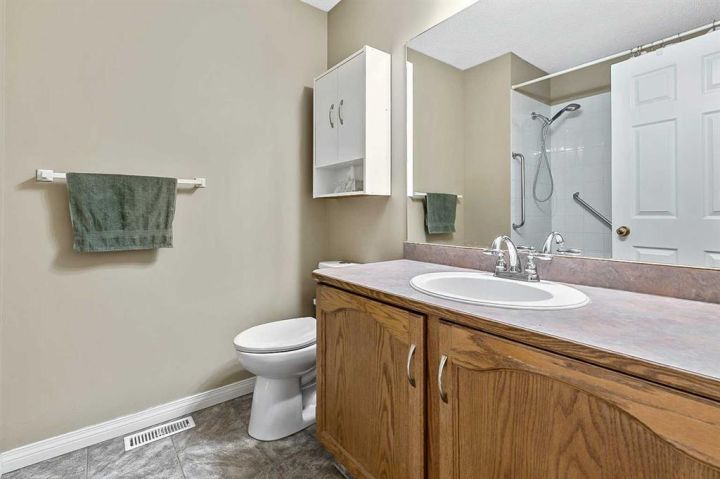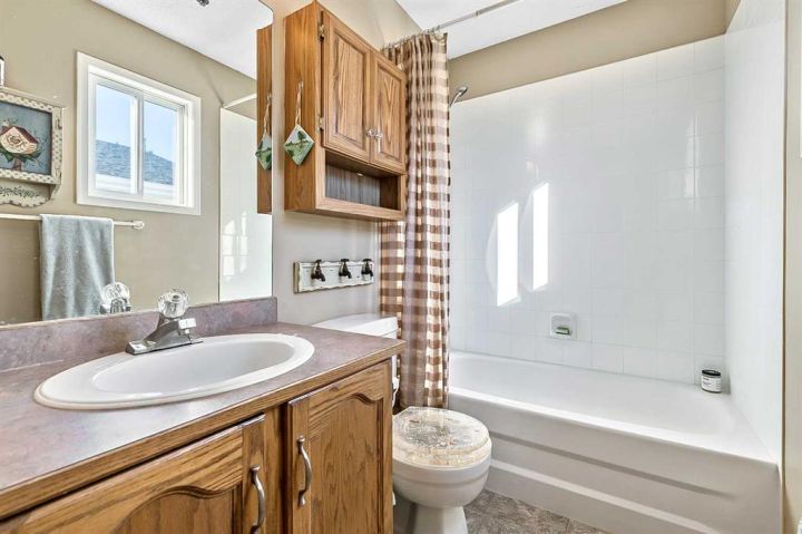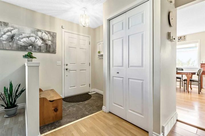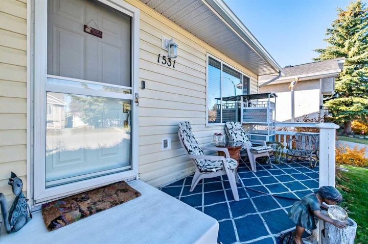 Tucked away on a quiet street, you're just a short walk to schools, shopping, Sunshine Lake, and the scenic Happy Trails pathway system—ideal for families and outdoor enthusiasts alike. Inside, you'll find 4 bedrooms and 2 full bathrooms, including a private primary ensuite. The upper level offers three generous bedrooms, while the fourth bedroom is located on the lower level—perfect for guests, teens, or a home office setup. The main floor features a bright, spacious living room with a cozy gas fireplace, a cozy dining area, and an open-concept kitchen—perfect for everyday living and entertaining. A convenient side mudroom/laundry area with direct access to the backyard helps keep the home tidy and organized. The lower level includes a comfortable family room, the fourth bedroom, and a mechanical room, with access to a full crawl space offering abundant seasonal storage. For those that love the sun - this house offers windows for sun from all directions. Enjoy the morning sun in the kitchen, afternoon / evening sun from the upper bedrooms or lower family room and all-day sun that lights up the house from the skylight that is over the stairs to the upper floor. Step outside to a beautifully landscaped and fully fenced backyard, ideal for kids, pets, or relaxing in privacy. Enjoy your morning coffee on the charming front verandah or the sunny side deck. You'll also love the newly developed "she shed", currently used as an outdoor office/sitting room—just add a few twinkle lights, and it becomes the perfect spot to unwind at the end of the day. For additional covered storage - there are 2 sheds on West side of the house. Cat lovers, take note! This home features custom “catios” at the front and back, allowing your furry friends to enjoy the outdoors safely within the yard. Additional features include: Off-street parking on an oversized concrete pad, updated shingles - replaced in 2024 and Mature trees and thoughtful landscaping including 3 established raised garden beds. This home blends space, functionality, and a great location. Don’t miss your opportunity to make it yours!