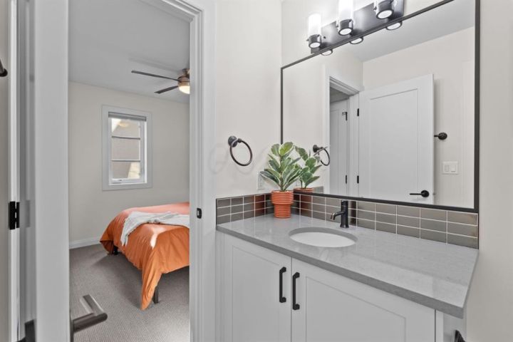 Breakfast Bar, Ceiling Fan(s), Closet Organizers, Double Vanity, Dry Bar, High Ceilings, Kitchen Island, Natural Woodwork, Open Floorplan, Quartz Counters, Smart Home, Walk-In Closet(s)