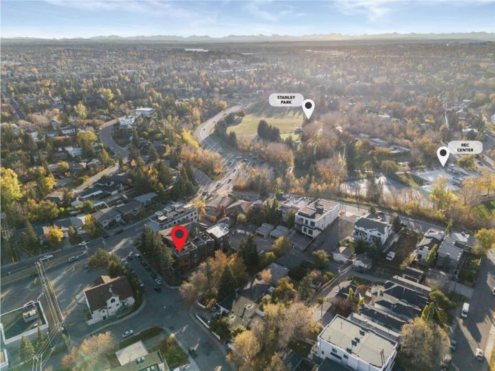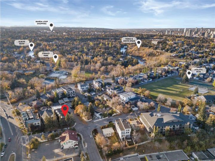 Welcome to this stunning corner-unit, 3-level townhouse located in the heart of Parkhill/Stanley Park. Boasting 3 bedrooms, 2.5 bathrooms and a private ROOF TOP PATIO with breathtaking year-round views, this home perfectly blends urban convenience with natural beauty. This location is truly hard to beat - 7 minute walk to the C-train, 8 minute drive downtown, 4 minute drive to Chinook Mall, 7 minute drive to the Calgary Stampede, and best of all, just one block away from beautiful Stanley Park, where you can enjoy easy access to riverside trails, tennis courts, swimming pools, tobogganing, an outdoor skating rink, sports fields, lawn bowling, ping pong tables and lush green space – ideal for outdoor enthusiasts. Inside this executive home, you’ll find an elegant interior finished with hardwood and tile flooring, soaring windows that flood the space with natural light, and a gourmet kitchen featuring quartz countertops, a large island, and custom cabinetry. The primary suite offers a spacious walk-in closet and a spa-inspired en-suite bathroom – your personal retreat at the end of the day. Additional highlights include a single attached garage (220V wired and EV ready), built in Sonos sound system (kitchen/living, master and rooftop), in-floor heating (ground floor and master ensuite), driveway, and low maintenance luxury throughout. This home is more than a place to live – it’s a lifestyle.