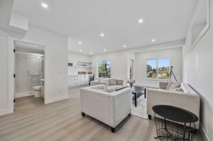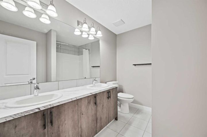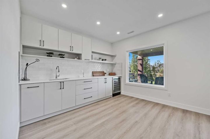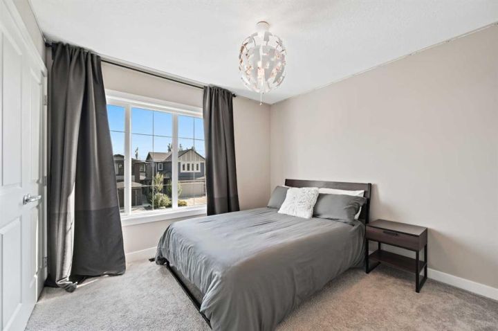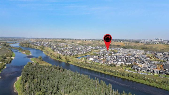 Located in Cranston’s exclusive Riverstone, this 2,167 sq ft two-storey, air conditioned, family home features 4 bedrooms and 3.5 bathrooms, thoughtfully laid out with all bedrooms on the upper level—alongside a spacious bonus room and a fully developed walkout basement. The open-concept main floor boasts 9' ceilings, oversized windows, and direct sightlines to the pond and walking paths behind. The gourmet kitchen is anchored by an 8-foot island, complete with quartz countertops, stainless steel appliances, and an extended walk through pantry with generous storage and unbeatable prep space. Upstairs, the spacious primary suite offers a 4 pc ensuite, with a deep soaker tub, glass shower, large vanity with makeup area, plus a generous walk-in closet. Recent interior upgrades include new lighting throughout—chandeliers, ceiling fans, and pot lights. The lower level, finished in July, provides over 730 sqft of additional living space, with a wet bar/kitchenette, large rec room, office nook, full 3pc bath with a walk-in shower, and two storage rooms. The insulated, attached double garage (over 385 sqft) completes the package. Your outdoor living options include an expansive upper deck (complete with natural gas hook up, an oversized ground level patio, and easily maintained landscaping with unique foliage in the backyard. You'll especially love the direct access to walking trails and the nearby Bow River right from your backyard. Easy access to Deerfoot and Stoney Trails. Convenient to Seton YMCA, excellent schools, all the shops and restaurant amenities. Do not miss your opportunity to bring your family to one of Calgary’s most desirable upscale communities!