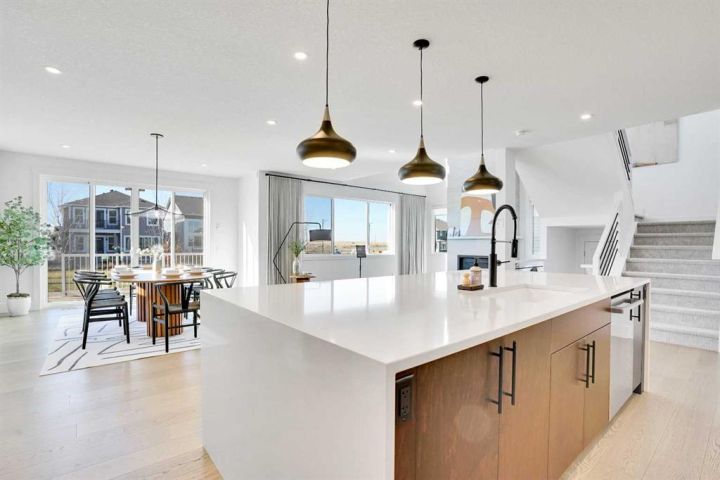 As you step inside, the main floor greets you with engineered hardwood flooring that flows seamlessly throughout the open-concept layout. The heart of the home features a gourmet kitchen with a striking waterfall island, high-end finishes, and a gas cooktop. Complementing it is a convenient spice kitchen, perfect for additional meal preparation. The spacious great room is enhanced by a gas fireplace, creating a warm ambiance for family gatherings, while an elegant open-to-below design adds to the grandeur. A bright office on the main floor offers the perfect workspace for today’s lifestyle.? Upstairs, you’ll find ?4 beautifully appointed bedrooms with built-in closets?, a laundry room and thoughtfully designed spaces for the entire family. The primary suite is a true retreat, featuring a full-tile shower, a stand-alone soaking tub, and premium finishes throughout. ?Another second prime bedroom has 4pc ensuite and a closet. The other 2 bedrooms share another 4pc bathroom. A huge center bonus room is the heart of the property. Railing details extend across the upper level, adding to the home’s modern appeal and open feel.? The fully developed basement expands your living space with a well-equipped wet bar complete with a sink, dishwasher, and beverage mini-fridge — ideal for entertaining. The lower level also features a steam shower, additional bedrooms, and a private side entry, offering flexibility for extended family or guests.? Enjoy comfort year-round with air conditioning, and take advantage of outdoor living on the rear deck overlooking the landscaped backyard. This home comes fully landscaped and ready for immediate enjoyment, with possession available in 30 to 60 days.? Offered at ?this attractive price this exceptional show home truly blends craftsmanship, functionality, and luxury in one perfect package.
