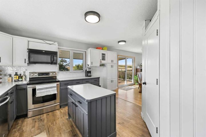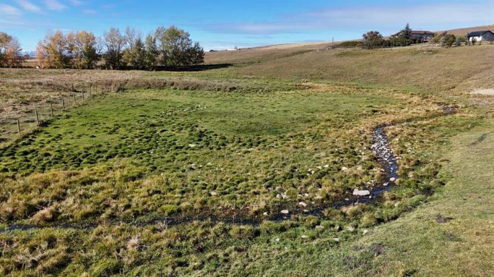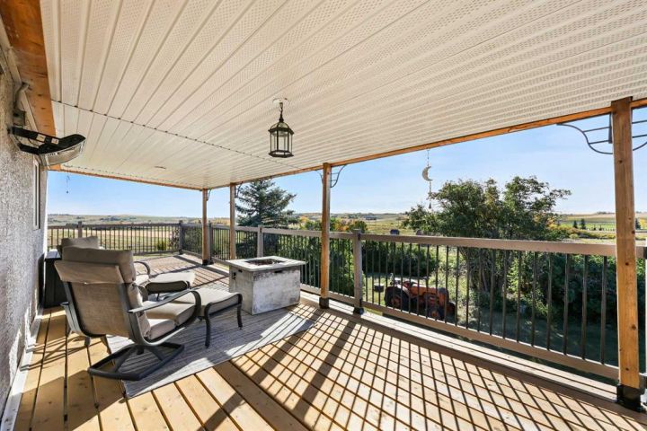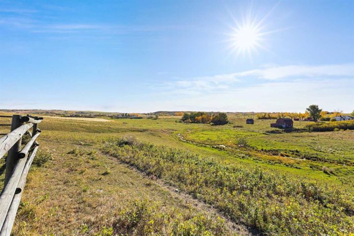 152 Acres of Peaceful Prairie Living, just 9 km from Okotoks! Looking for space, views, and room to breathe? This 152-acre grassland parcel has it all! Rolling hills, mature trees, and a cozy walk-out bungalow that feels like home the moment you walk in. Set just southwest of Okotoks on 434 Ave (west of 64 St), this property blends country quiet with easy access to town. This walkout bungalow offers over 2,000 sq/ft of developed living space, featuring an open-concept layout, a mix of hardwood and vinyl plank floors, and a comfortable main-floor primary suite with a 4-piece ensuite. The kitchen is open and bright with an island and quality appliances, perfect for casual dinners or morning coffee with a view. Many of the windows and doors have been replaced, along with new decking, fresh exterior paint, fresh interior paint and new water softener system installed. Step outside to enjoy the wrap-around deck that catches the morning sun on the east side and offers a covered, south-facing spot to relax or entertain. The lower level of this home has been completely renovated, and it speaks for itself and sports a large family room, full bath (completely re designed to be more spacious), laundry room, and a bedroom. The land itself gently slopes to the South, offering beautiful mountain views, excellent drainage, a spring-fed seasonal creek, and a lovely mix of open space and mature trees. There’s a single detached garage with a new roof, windows, and freshly painted siding, a 48’x29’ Barn complete with all new Tin siding and roofing, wood rail fencing, installation of 2 new auto stock waters, turn out pens, and a turn-around driveway. Whether you’re dreaming of a hobby ranch, a private retreat, or just a peaceful place to put down roots — this one’s worth a look. You’ll love the quiet, the views, and the easygoing country lifestyle that comes with it.