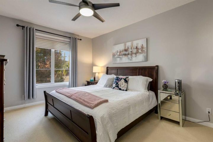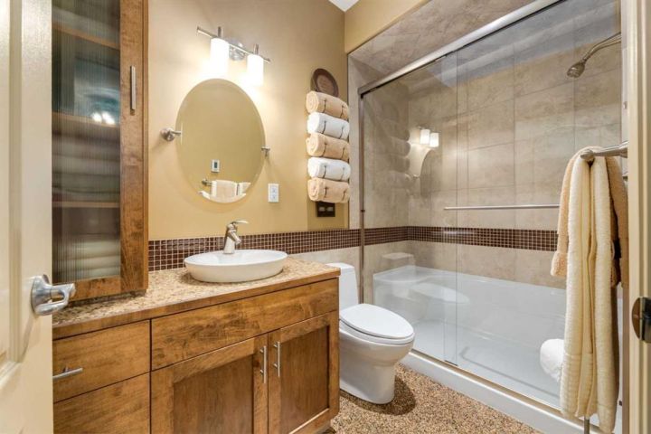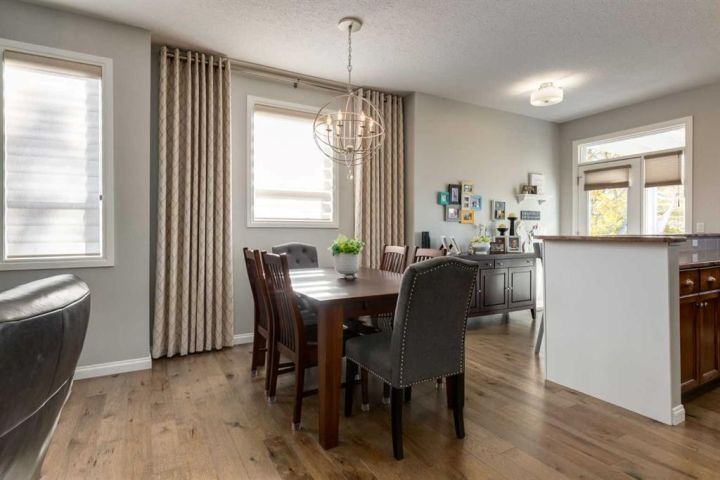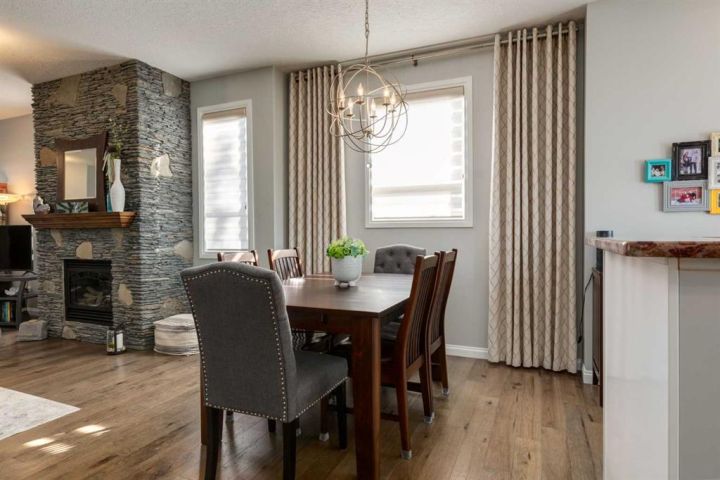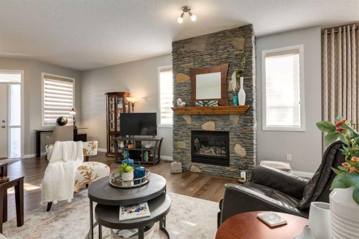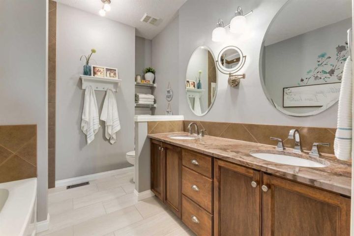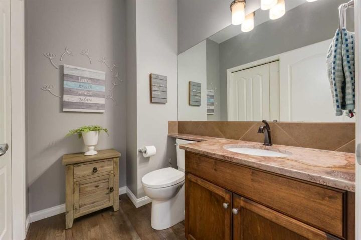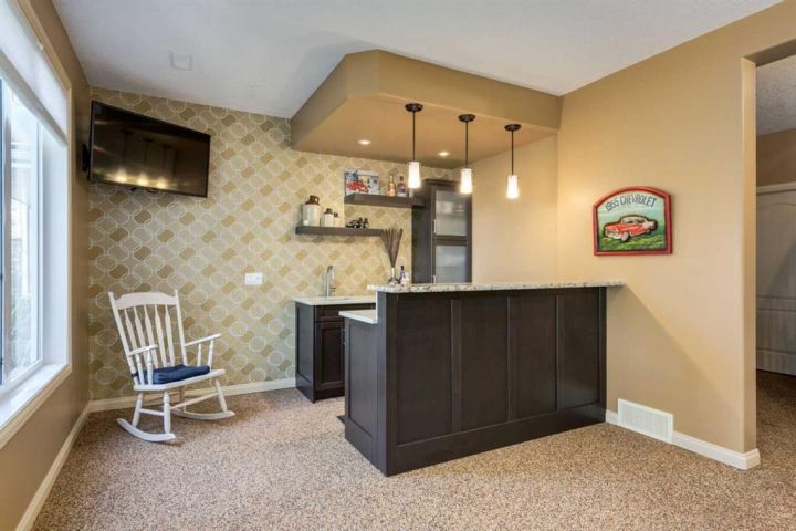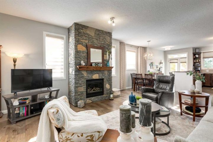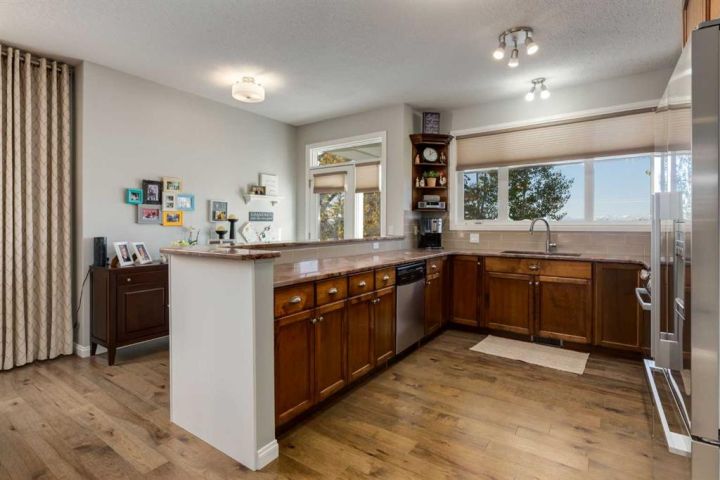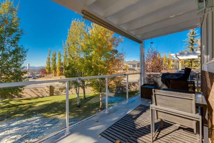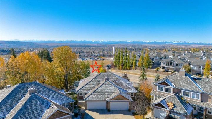 Exceptional walk-out bungalow backing onto serene green space with mountain views! Welcome to this immaculately maintained bungalow offering over 2,200 sq. ft. of beautifully finished living space. Perfectly situated in an exclusive, quiet complex with just 14 bungalow style villas, this home provides a rare combination of privacy, elegance, and breathtaking natural surroundings. From the moment you step inside, you’ll be impressed by the rich hardwood flooring, soaring ceilings, custom Hunter Douglas blinds and abundant natural light that define the main living area. The kitchen features, beautiful dark cabinetry, granite countertops, a convenient eat up bar, pantry and stainless steel appliances, seamlessly flowing onto a sunny southwest facing deck with a charming pergola; perfect for enjoying your morning coffee or an evening glass of wine while surrounded by nature. The inviting living room centres around a stunning gas fireplace with beautiful masonry, creating a warm and welcoming atmosphere. The primary suite offers a private retreat with a luxurious 5 piece ensuite, including a double vanity, soaker tub, separate shower, and a spacious walk through closet. A discreetly located 2 piece powder room and laundry area add thoughtful functionality to the main level. Descend down the elegant curved staircase to the fully finished walk out lower level, where a spacious recreational area with a pool table offers the perfect setting for entertaining or relaxing. This level also features a generous second bedroom, a beautifully appointed 3 piece bathroom with heated flooring and an impressive wet bar complete with quartz countertops and exquisite built in cabinetry. Ample storage space and a covered patio create the ideal blend of functionality and outdoor enjoyment. Additional highlights include an insulated double attached garage, private driveway and visitor parking. The complex is beautifully maintained, with meticulous care evident throughout the grounds and common areas. Located just a short stroll from the LRT station, commuting is effortless. You’ll also enjoy easy access to exceptional amenities, including one of the city’s newest YMCA facilities, shopping, dining and recreational options. For those who love the outdoors, a quick drive west puts you on the road to Banff National Park in just over an hour. This is a rare opportunity to own a premium villa in one of the city’s most desirable locations; a perfect blend of comfort, elegance and convenience. Book your private showing today!