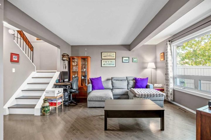 Bright and Modern Two-Bedroom Townhouse in Northwest Calgary Step into this bright, cheerful, and beautifully updated two-bedroom, one-bathroom townhouse! The main floor has been thoughtfully renovated to create an open-concept layout that flows seamlessly from the kitchen to the living area—perfect for entertaining or relaxing at home. This inviting space features hardwood floors throughout the home, with tile in the kitchen for easy maintenance and modern style. Located in a well-maintained complex in desirable Northwest Calgary, this home offers the ideal blend of comfort, style, and convenience. You’ll love being close to schools, Nose Hill Park, the recreation centre, and the city library. Excellent shopping options are just minutes away, including Superstore and Deerfoot City. Inside, you’ll find numerous recent upgrades: granite countertops, new windows, a new front and patio door, a brand-new dishwasher and fridge, plus a newer washer and dryer. The furnace has been refurbished and is in excellent condition, and the hot water tank is newer, offering peace of mind for years to come. The spacious primary bedroom easily fits a king-sized bed and features its own private balcony—perfect for morning coffee or evening relaxation. The upper floor also includes a second bedroom and a full bathroom. Step outside to enjoy your beautifully landscaped garden and deck, an inviting outdoor retreat for spring and summer gatherings. This home truly has it all—comfort, modern style, and an unbeatable location! (pets are allowed )