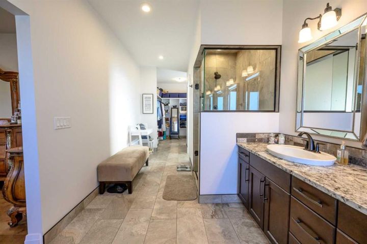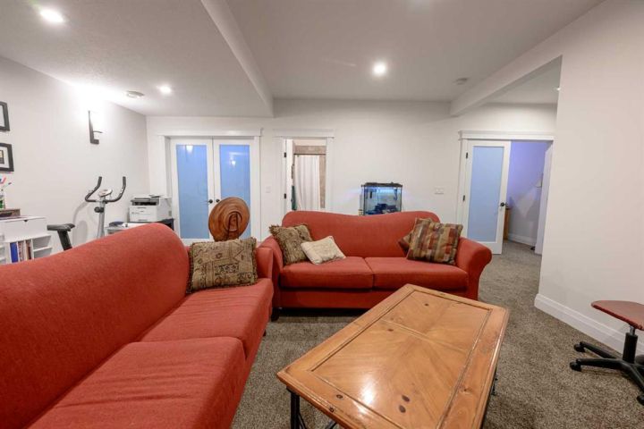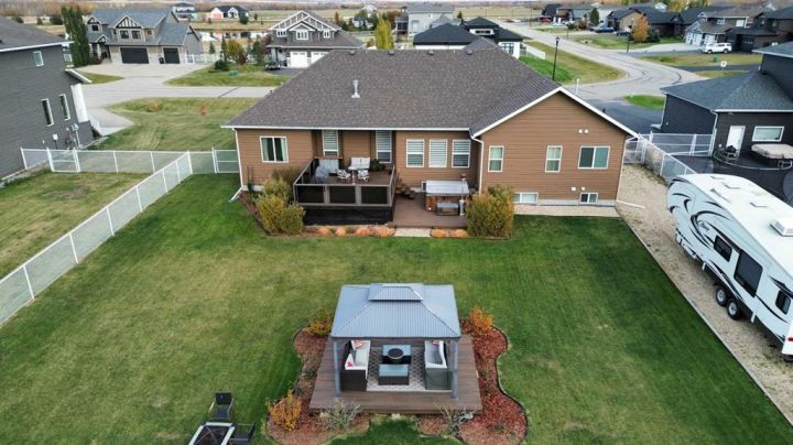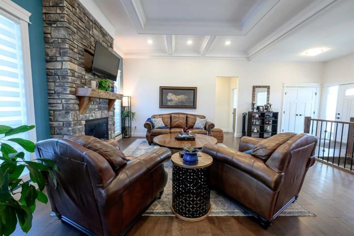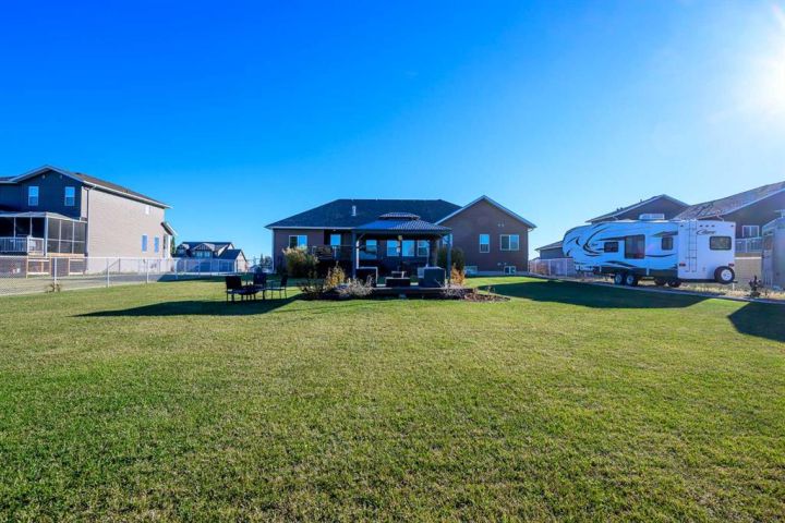 Discover your dream home! This stunning 2029 sqft bungalow in the sought-after Carriage Lane neighbourhood offers an expansive layout with 6 bedrooms and 4 full bathrooms. The open-concept main floor, perfect for entertaining, is beautifully appointed with high-end tile, hardwood, and warm carpet. The gourmet kitchen is a chef's delight, featuring granite countertops, a gorgeous backsplash, and extensive cabinet space. In the living room, elegant coffered ceilings create a sense of grandeur. The main floor features three bedrooms, including the serene master suite—a true retreat with a spacious walk-in closet and a spa-like ensuite with dual sinks, a custom-tiled shower, and a deep soaker tub. The lower level is an entertainer's paradise, fully developed with a wet bar, home theatre room, and a large living area. The basement includes three more generous bedrooms and two full bathrooms, including a private guest ensuite. Outside, the features are just as impressive: a finished and heated attached triple garage, paved RV parking with full power/sewer hookups, extended gravel parking, two west-facing decks, gazebo, and a three-season greenhouse. This meticulously cared-for property is the complete package.