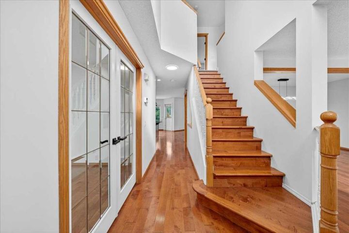 Newly renovated 2-Storey Home in Citadel | 2,275 SQ FT Above Grade | 3,200+ SQ FT Total | Fully Finished Basement | New Roof 2024 | 4 Bedrooms | 3.5 Bathrooms Welcome to this exceptionally well-maintained and recently upgraded family home located on a quiet street in the desirable community of Citadel. With over 3,200 sq ft of developed living space, this 2-storey home features 3 bedrooms up, a fully finished basement, and numerous recent updates throughout. Main floor offers a formal living/dining area, private den/office with French doors, cozy family room with gas fireplace, and a beautifully upgraded kitchen with wood cabinetry, granite counters, large island, built-in server with drawer microwave, pull-out pantry & garbage, brand new gas cooktop, and stainless steel appliances. A bright breakfast nook leads to the large deck and landscaped backyard. Hardwood floors run throughout the main level. Upper floor features new hardwood flooring, a convenient laundry room with new tile, two spacious bedrooms, and a fully renovated 4-piece bathroom. The primary suite offers a walk-in closet and a newly renovated stunning 5-piece ensuite with soaker tub, separate shower, quartz counters, undermount sinks, new faucets, New lighting, one-piece toilet, and updated tile flooring. The fully finished basement includes a huge rec room with second gas fireplace, wet bar, fitness area, 3-piece bath with wall-mounted electric heater, and a Bedroom. Additional Upgrades: New paint all over(interior & exterior front), New light fixtures, chandeliers, and door handles, Central vacuum system, New roof (2024),Wall-mounted electric heaters in basement bath, hallway, and bedroom. Prime location with easy access to Stoney Trail, Country Hills Blvd, schools, parks, and shopping. Check out the virtual tour/multimedia link and book your private showing today!