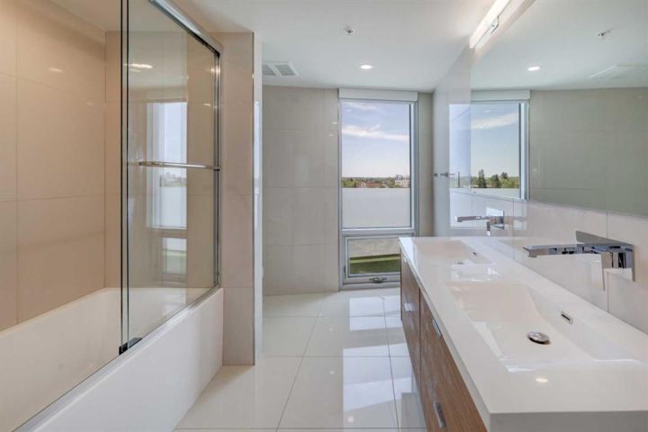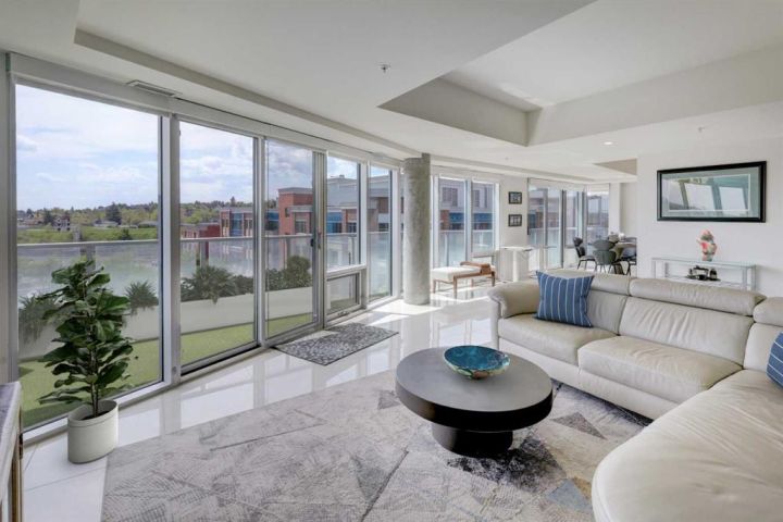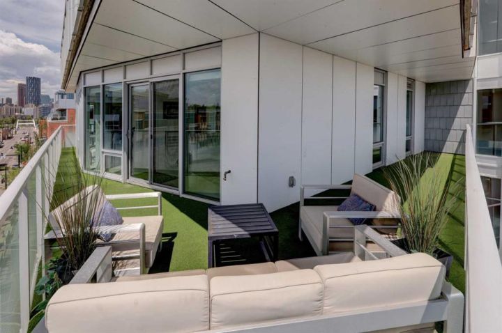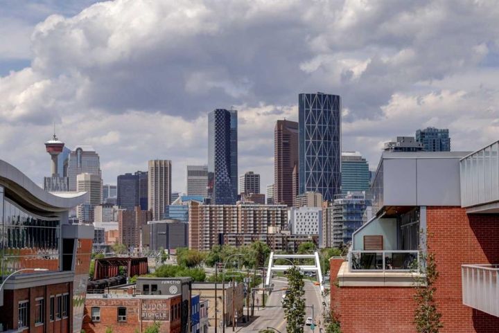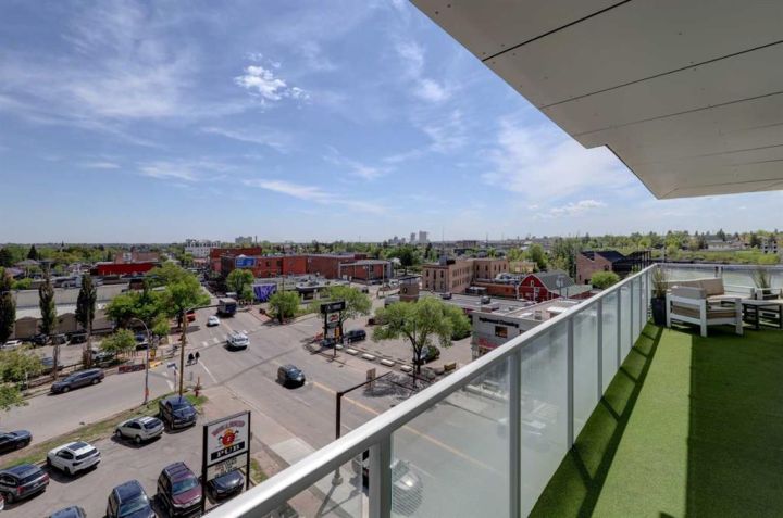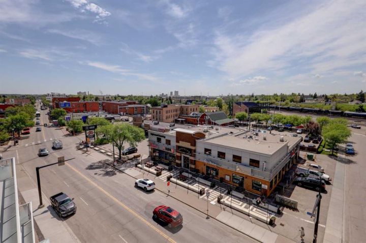 Welcome to unit 601, a stylish 1250+ sq ft sub-penthouse in the modern Avli On Atlantic- a very sleek building in historic Inglewood, steps to great shopping, excellent restaurants, cool pubs and an easy walk to the Bow Valley pathways, Fort Calgary,The Saddledome and downtown. This large 2 bedroom, 2 bathroom, 2 titled parking stall unit features a wall of windows flooding the main living space with natural light, architectural touches - cove ceilings, concrete pillar, gleaming tile floors and custom roller blinds. The European style kitchen has ample counter space, built in pantry, integrated dishwasher & fridge, additional cabinets and an extended quartz island with wooden accent, all over looking the dining and main living area, perfect for entertaining. Dual sliders open to the large 300+ square foot wrap around patio (with n-gas hook up) where you have stunning views of 9th Avenue, Ramsey, Inglewood and downtown. The large primary bedroom has modular storage cabinets and a 4 piece ensuite with floating dual vanity & heated floors, an excellent retreat. This unit has it all including ensuite laundry and storage, additional large storage locker, secure bike storage, visitor parking, guest suite and common furnished terrace (3rd floor) for larger get-togethers. The building is very well taken care of and the location is supreme.