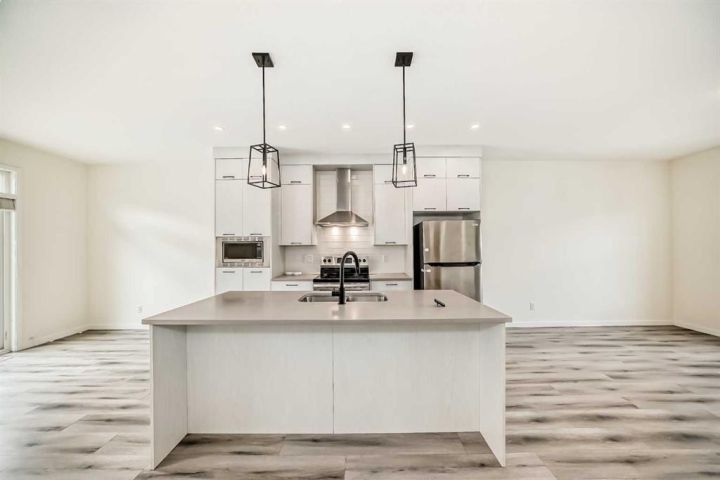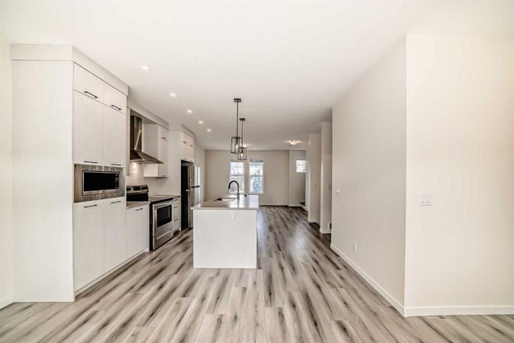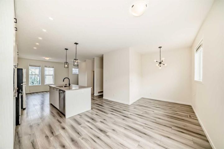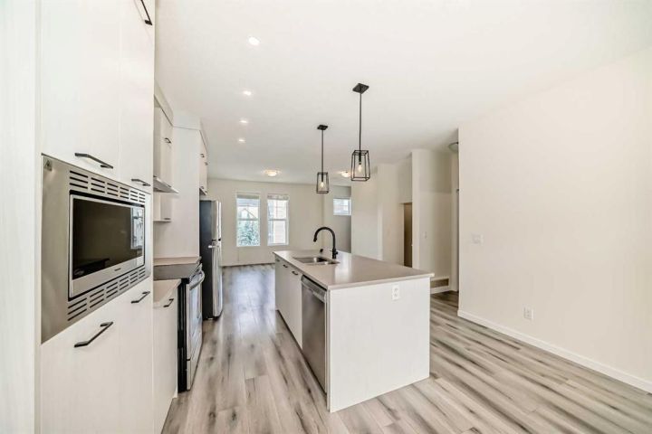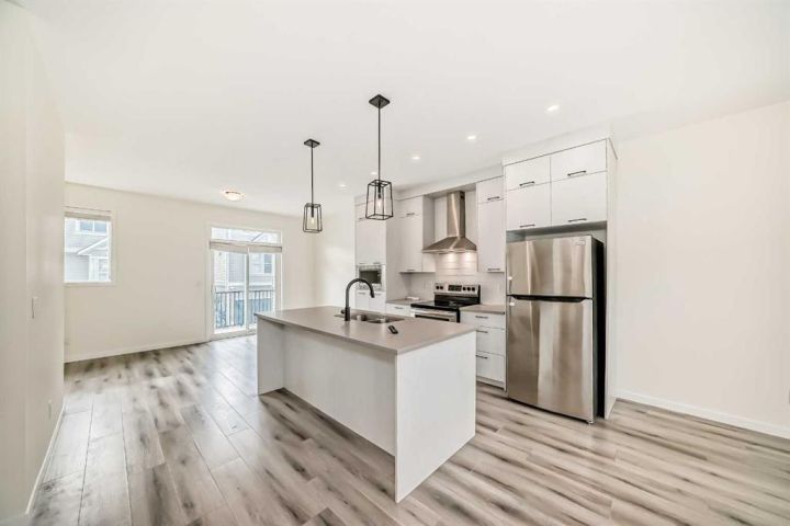 Welcome Home!This stunning 3-bedroom, 2.5-bath townhouse offers comfort, style, and functionality — everything you’ve been looking for!As you enter, you’ll be greeted by a bright office space on the main floor, perfect for working from home, along with convenient access to the double attached garage. Upstairs, the modern kitchen features a gorgeous quartz island with bar seating, stainless steel appliances, and ample counter and cabinet space — ideal for cooking and entertaining. The open-concept living and dining area flows beautifully, creating a warm and inviting atmosphere. On the top floor, you’ll find a laundry closet conveniently located in the hallway and spacious bedrooms, including a primary suite with a large walk-in closet and a 3-piece ensuite. With easy access to Deerfoot Trail and nearby shopping, schools, and parks, this home truly combines comfort with convenience. Book your private showing today.