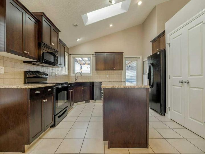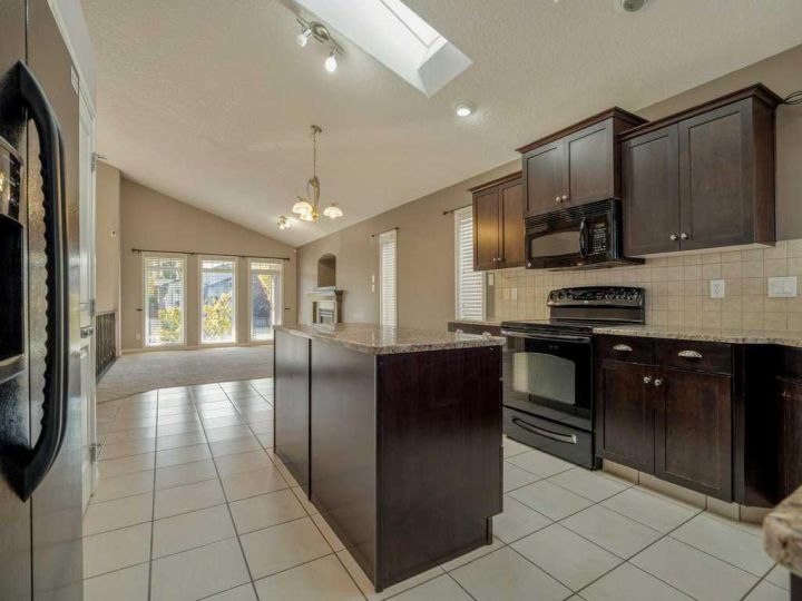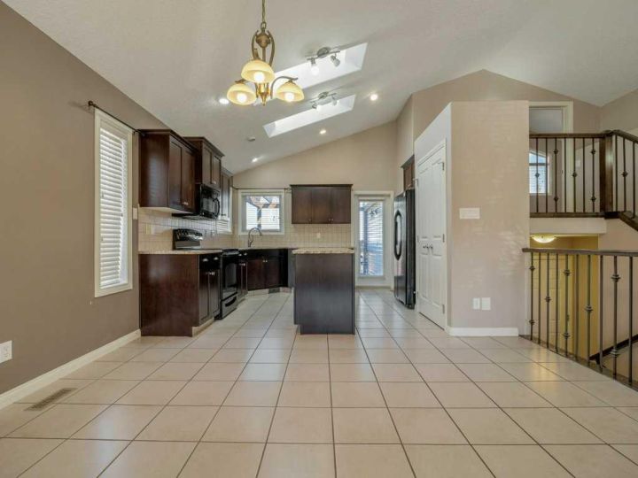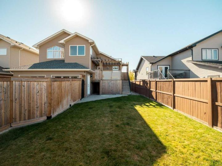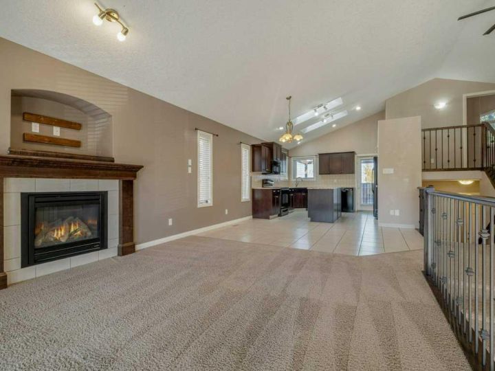 Great location with amazing views in this 1564 sq/ft Modified Bi-level with the Primary bedroom over the garage. Features 4 bedrooms, 3 bathrooms, beautiful kitchen with granite countertops, towering vaulted ceilings, gas fireplace, 5 piece ensuite and walk in closet in the primary bedroom, massive family room in the basement, deck with storage underneath, large finished attached double garage 23'2" x 23'11", central air, back lane and much more.