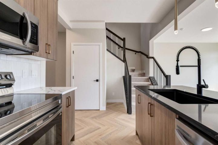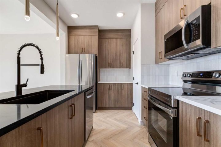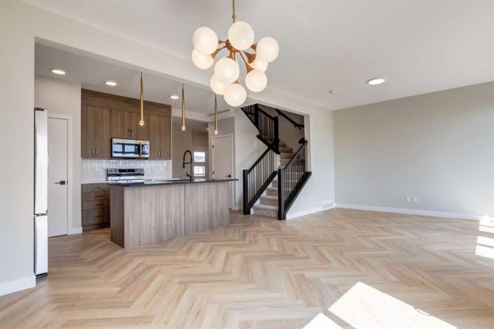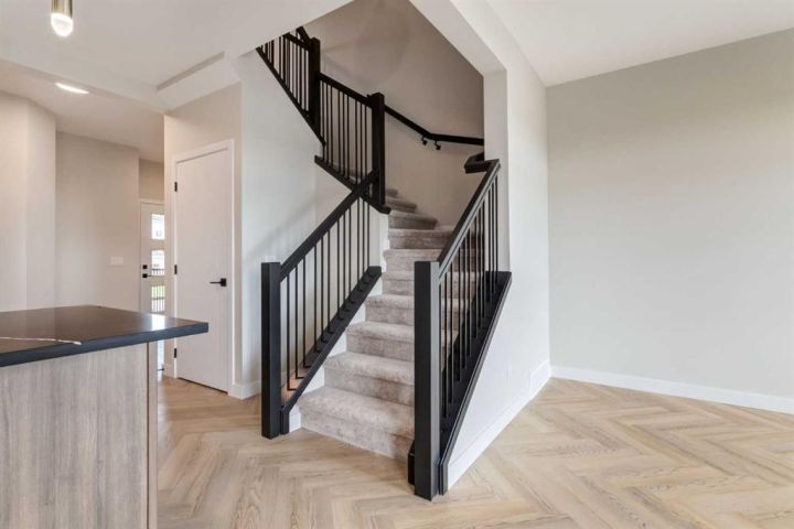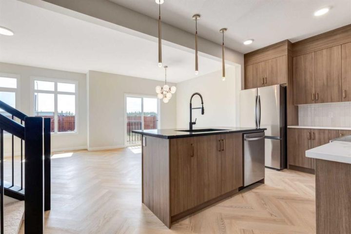 *** OPEN HOUSE at Greystone showhome - 498 River Ave, Cochrane - Sat. Oct 18 1-4pm, Sun. Oct 19 2-4pm, Tues. Oct 21 3-6pm *** Welcome to the pinnacle of contemporary living in this beautifully designed duplex—the Dallas Model. Offering 1,731 sq ft of modern elegance, this 3-bedroom, 2.5-bath home blends style and functionality seamlessly. The open-concept main floor is flooded with natural light, enhanced by 9-foot ceilings and expansive triple-pane windows. A gourmet kitchen with sleek quartz countertops and a convenient walkthrough pantry adds to the home’s appeal. Enjoy the benefits of a separate side entrance and the ease of a double attached garage with direct access. Thoughtfully crafted, the Dallas Model is a truly exceptional place to call home. New Home Warranty Included