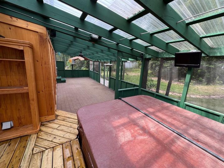 Welcome to 126 Community Lane in the desirable Saprae Creek Estates — a spacious, well-maintained home offering nearly 1,900 SQFT above grade and a thoughtful multi-level layout perfect for family living. The main floor features a thoughtful design with a comfortable living area, dining space, and a functional kitchen complete with custom cabinetry, a second prep sink with garburator, and premium-grade appliances including a gas range with electric oven, oversized fridge with ice and water dispenser, and Bosch dishwasher. The home offers a generous primary bedroom with walk-in closet and ensuite, plus several additional bedrooms ideal for family or guests. Enjoy quality finishes throughout, including oak hardwood flooring, heated ceramic tile in the entry, mudroom, basement and main-floor bathrooms, and premium linoleum in the kitchen and upper bathroom. Step outside to a fully covered and screened-in three-season deck featuring a built-in hot tub and sound system wiring — the perfect place to relax or entertain. The property is a dream for hobbyists or tradespeople with multiple heated outbuildings, including: Double attached garage with radiant tube heating and 220V power Rear work shed fully insulated with radiant tube heating, 220V wiring, and built-in workbench and cabinets Main shop fully insulated with overhead heater, 220V wiring, 16-foot ceiling, electric overhead door, and plumbing for in-floor heat with cold water supply from the house Additional updates include newer shingles (2013) and windows (2008). With its custom craftsmanship, ample parking, and peaceful Saprae Creek location, this home delivers exceptional value and functionality — ideal for families and those needing space for projects or toys