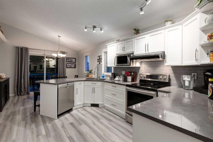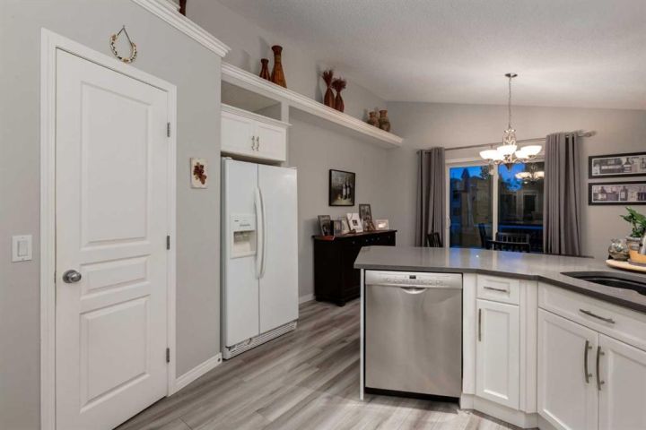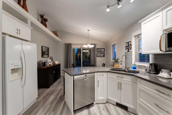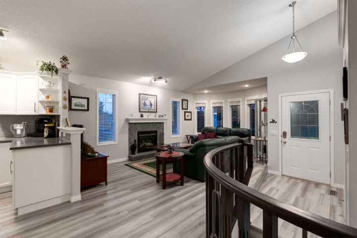 Welcome to your immaculately maintained, lovingly cared-for park-backing and siding walkout bungalow in the wonderful community of West Creek in Chestermere. Offering over 1,900 sq. ft. of developed living space, this home features 4 bedrooms (2 up and 2 down), 3 full bathrooms, a fully developed walkout basement, and an extra-long double attached garage. All the amenities you need are just minutes away including groceries, coffee shops, restaurants, and big-box stores. Families will appreciate the convenient location, with Rainbow Creek Elementary, Our Lady of Wisdom Catholic School, Chestermere Lake Middle School, and East Lake School (French Immersion) nearby. Enjoy the community’s extensive pathway network, parks, playgrounds, and Chestermere Lake for year-round recreation. The main floor showcases an open-concept kitchen, dining, and living area featuring luxury hard surface flooring, updated designer paint, stainless steel appliances, quartz countertops, designer-selected backsplash, cozy fireplace, and large windows that fill the space with natural light. The primary bedroom overlooks the park and offers a spacious ensuite with a walk-in shower, soaking tub, and dedicated makeup area. A second bedroom and full bathroom complete the main level. The fully finished walkout basement offers a comfortable media room, laundry area, two additional bedrooms, and a third full bathroom. The yard is truly exceptional - backing and siding onto a beautiful park with mature trees, walking paths, and plenty of privacy. The upper patio and lower walkout deck create an ideal setting for outdoor relaxation and entertaining, blending indoor comfort with outdoor charm. This is a fantastic family home in a perfect location, ready to welcome its next owners!