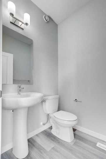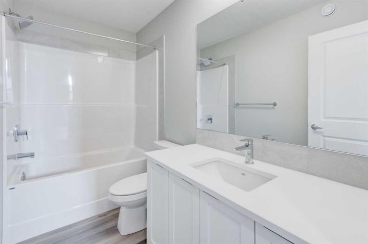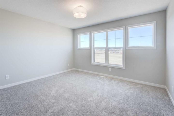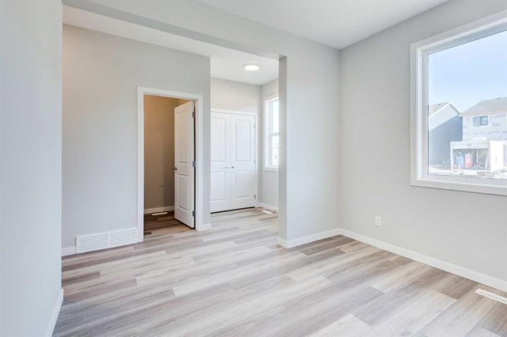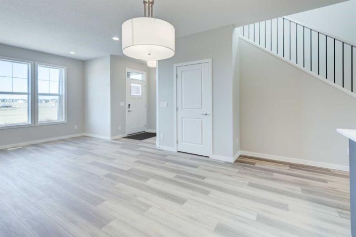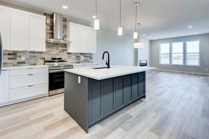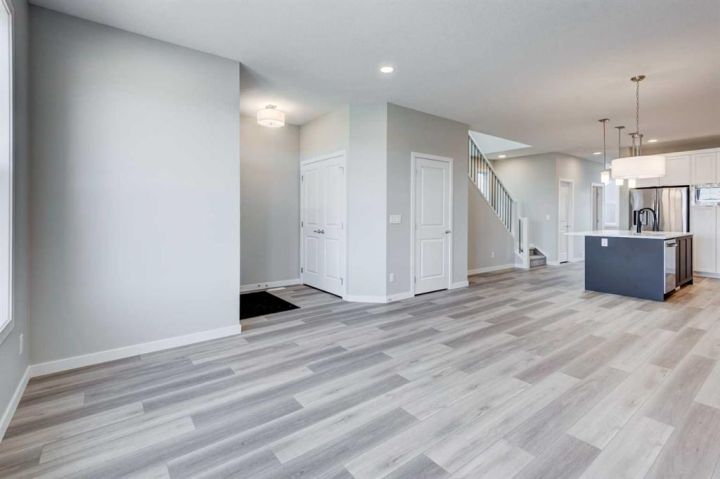 CELEBRATE THE HOLIDAYS IN YOUR BRAND NEW HOME!! Welcome to Your Dream Home in Calgary's finest LAKE COMMUNITY – Where Luxury Meets Practical Living! Step into this brand new, never lived in masterpiece built by EXCEL HOMES – the upgraded BERKLEY model offering 1872 sf of contemporary design and exceptional functionality. The open-concept floor plan seamlessly connects the living room w/big windows & electric fireplace, central dining area, and showstopper kitchen – the true heart of the home. Cook like a pro in your chef-inspired kitchen that boasts loads of Eng stone countertops, large island & walk in pantry! At the rear of the home, a versatile flex room provides the ideal space for a home office or playroom, & a 2 piece bathroom! An elegant black metal railing leads upstairs. Here you'll find three spacious bedrooms including a stunning primary suite with a walk-in closet and private ensuite w/dual sinks. A vaulted bonus room with pot lighting is centrally positioned to separate the 2 secondary bedrooms from the primary suite & vaulted ceilings adds an elevated family retreat. The convenient upper-level laundry room makes day-to-day living easier. Thinking about rental income or extended family options? This home is roughed-in for a legal two-bedroom suite, with a separate exterior side entrance (city permits and approvals required). As a Certified Built Green home, you’ll benefit from energy-saving features and smart home tech, including Ring doorbell, Wi-Fi-enabled garage opener, smart thermostat, extra CAT6 and USB outlets, plus 9' knockdown ceilings, metal stair railings, and luxury vinyl plank flooring on the main level. Whether you're a growing family, savvy investor, or multi-generational household, this is the home you've been waiting for. Move in, unpack, and start living your best life in Mahogany!!! With over 35 years of experience, over 15,000 homes built & 75 awards for design & industry excellence, Excel Homes is a wise choice!