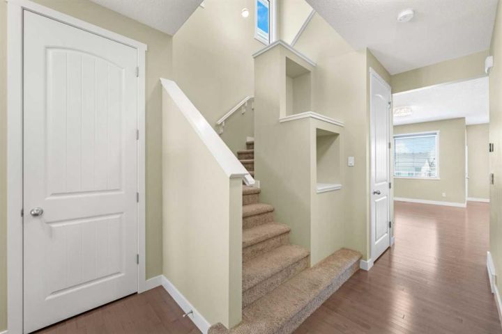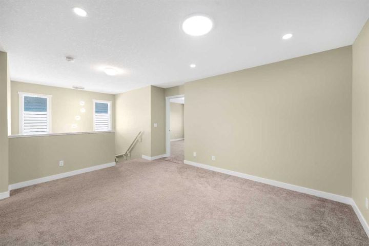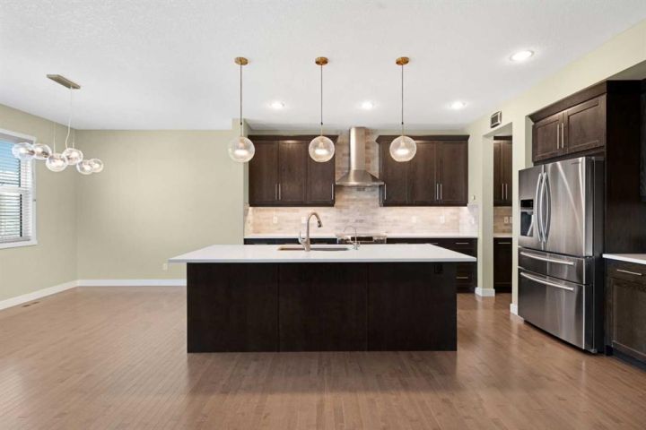 **OPEN HOUSE this SAT, Oct 18th at 2-4PM** Nestled in a family-friendly neighbourhood with a brand-new Catholic school underway, this beautifully upgraded walkout home backs onto a scenic walking path and offers over 2,500 sq.ft. of comfortable living space across three levels — perfect for growing families who value both style and function. Step inside the main level where 9 ft ceilings and gleaming hardwood flooring set an elegant tone. A quiet Den near the entrance makes a great home office or hobby space. The East-facing open concept layout creates a natural gathering hub with a sunlit Living Room featuring a large window and cozy gas fireplace framed by a stone wall and mantle. The well-appointed Kitchen is a chef’s dream — complete with a central island with eating bar, quartz countertops, stainless steel appliances, soft-close cabinetry, a butler’s counter, and a large walk-through pantry that connects directly to the Mudroom for everyday convenience. The upper level features a spacious centre Bonus Room with a solar tube skylight — the ideal space to unwind or enjoy family movie nights. The Primary Bedroom enjoys elevated views from the higher ground and features a large walk-in closet and a 4-piece ensuite with extended counter space for a makeup vanity, a soaker tub, and a standing shower with built-in seat. Two additional well-sized Bedrooms — each with walk-in closets — are served by a 4-piece Bathroom. A thoughtfully designed Laundry Room with closet organizers completes this level. The fully finished walkout basement adds valuable living space, featuring a generous Rec Room, a 4th Bedroom, and a 3-piece Bath — perfect for guests, teens, or multigenerational living. Step outside to enjoy a fully fenced, beautifully landscaped backyard framed with mature trees. Walk out directly from the Rec Room to the patio and enjoy seamless access to the walking path through the back gate — a rare and peaceful backyard setting. Additional mechanical upgrades include an HRV system, sump pump, and sewer backflow valve, as well as a water softener and under-sink water filtration system. Other upgrades include a brand-new roof, new gutters and eaves, triple-pane windows, and insulated OSB subfloor in the basement. Located on a quiet street, this home is just minutes from local shopping Costco, T & T Supermarkets, restaurants, parks, and more — offering the perfect blend of suburban peace and everyday convenience. Best of all, it’s within walking distance to the upcoming brand-new Catholic school. A must-see for those seeking a well-built home with thoughtful updates, desirable layout, and a location set to grow in value with the addition of the upcoming school. **Check out 3D Virtual Tour**