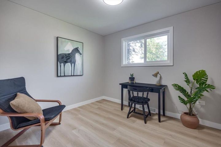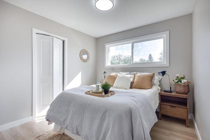 Discover this stunning, FULLY RENOVATED 4-bedroom, 2-bathroom bungalow in the desirable community of Grandview. Move-in ready and featuring luxurious modern finishes throughout, this home is perfect for buyers seeking both comfort and style. The gorgeous kitchen is a chef’s dream, with ample cabinet space, sleek quartz countertops, and stainless steel appliances, ideal for cooking and entertaining. Sunlight floods the bright living room through large windows, highlighting beautiful luxury vinyl plank flooring that adds warmth and elegance. Upstairs, you'll find three spacious bedrooms and a fully renovated main bathroom with stylish fixtures, while the fully finished basement offers a versatile 4th bedroom, a brand new full bathroom, a generous family or recreation room, and a convenient laundry area with plenty of storage. Step outside to a fully fenced, private yard with fresh sod, lush landscaping, and plenty of space for gardening or outdoor activities. The property also boasts a spacious 24x24 heated DOUBLE DETACHED garage with room for RV storage. Recent major updates include NEW WINDOWS, SIDING, DOORS, and a NEWER ROOF, ensuring peace of mind. Conveniently located near schools, shopping, and scenic trails, this beautifully updated home combines comfort and practicality in a sought-after neighborhood. Don’t miss out! Schedule your showing today before this exceptional property is gone!