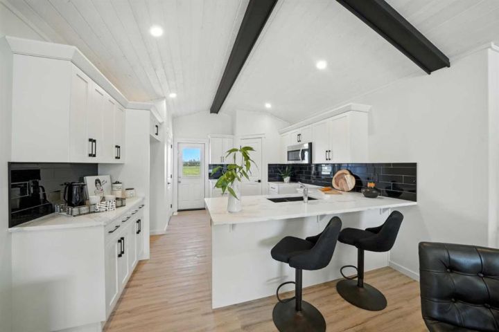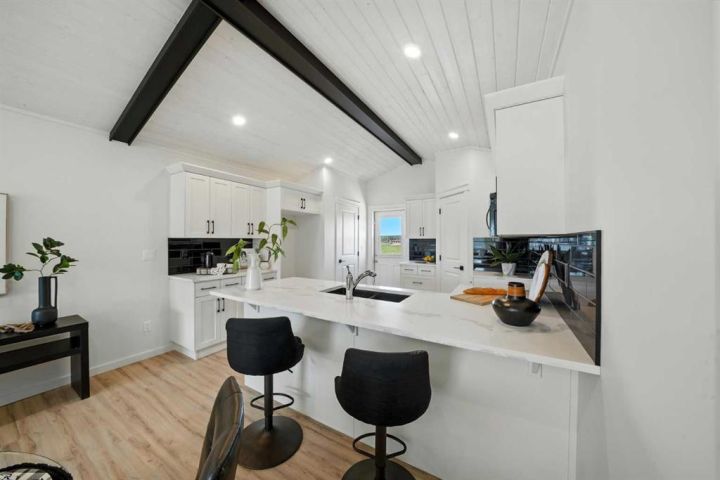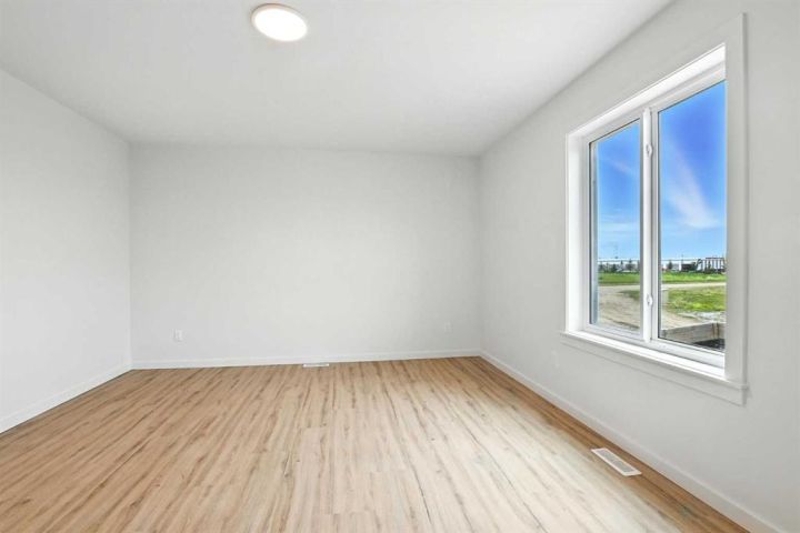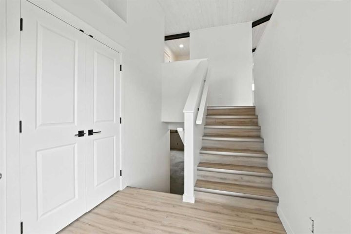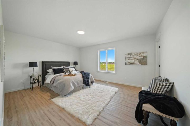 Step right in to a home that exudes LUXURY AND COMFORT, A practical and very functional floorplan, ideal for a growing family. Very IMPRESSIVE CURB APPEAL sets the tone- modern architectural lines, striking exterior finishes, and a welcoming front entry that feels fresh and inviting! Inside you will be wowed by the contemporary design, where clean lines, airy open spaces, and thoughtfully chosen finishes come together to create a home that feels both STYLISH and livable. High-end materials, sleek cabinetry, and high-end luxury vinyl plank flooring gives every room a polished, magazine worthy look, while large windows flood the home with natural light.. The main floor features an OPEN CONCEPT, 3 bedrooms, a four-piece bathroom, living room, dining and kitchen. Kitchen features: corner pantry with censored lighting, QUARTZ COUNTERTOPS, soft close doors and drawers, FULL POLISHED BLACK SUBWAY TILE, water line to the fridge, STAINLESS STEEL APPLIANCES, Undermount granite sink and black hardware. Shingles are 35-year asphalt, foundation is (ICF) insulated concrete form. The basement has been mostly wired and features a finished four-piece bathroom. Future floor plan for basement is available and features 2 spacious bedrooms, and a generous size family/recreational room. Plus the utility room where you will find the laundry and roughed in in-floor heat. PROGRESSIVE 10-year NEW HOME WARRANTY! The 20x24 double attached garage has rough in for heat, a floor drain and soft close modern overhead doors with driftwood finish. Other great features include: whitewash pine VAULTED CEILINGS on main floor, beams in living, dining and kitchen, electric fireplace in living room has feature wall with live edge wood mantle, commercial grade hot water tank, 35 year shingles, LED lighting and QUARTZ countertops throughout. Every detail in this show home has been carefully curated to showcase the latest in modern trends and craftsmanship- a perfect blend of function and flair. It’s a home that doesn't just impress at first glance. but continues to inspire as you explore every beautiful space.