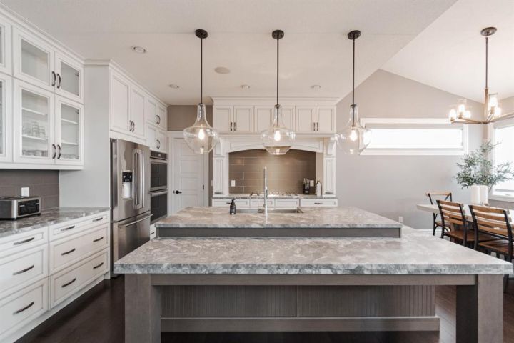 - Double Vanity, Granite Counters, High Ceilings, Kitchen Island, Open Floorplan, Pantry, Soaking Tub, Storage, Wet Bar