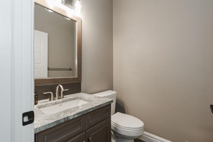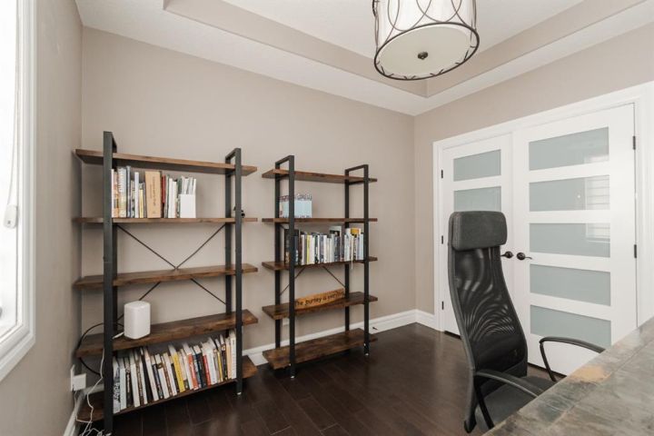 A main floor office provides the perfect quiet workspace with two windows for added natural light, and the mudroom offers main floor laundry for added convenience, along with a two-piece bathroom just off the garage entry.